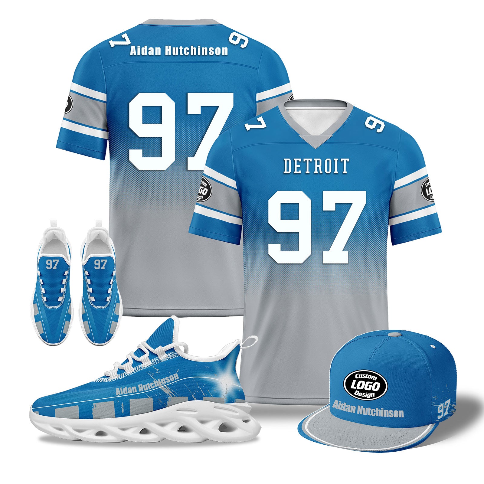 Custom Blue Gray Detroit Football MaxSoul Shoes and Hat Combo Offer Personalized Combo ZH-D020268-11