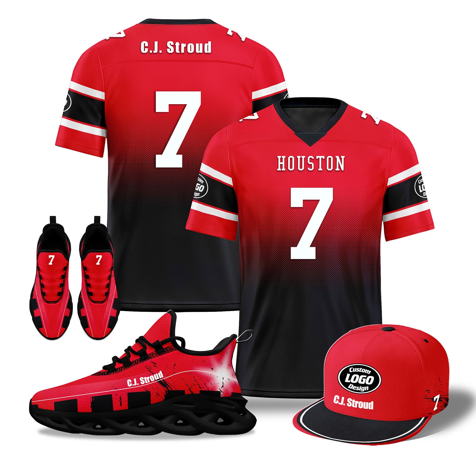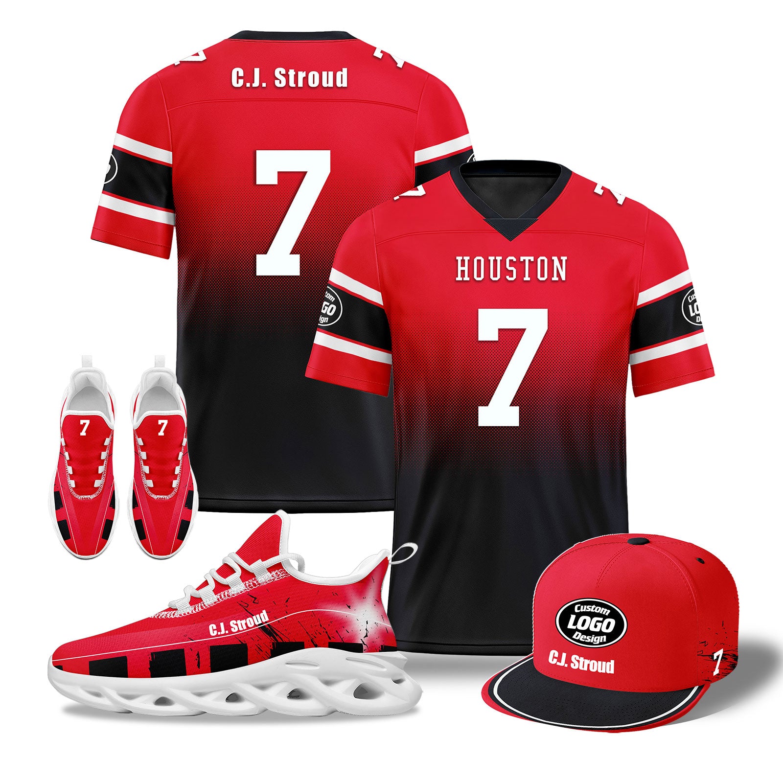 Custom Red Blue Houston Football MaxSoul Shoes and Hat Combo Offer Personalized Combo ZH-D020268-12