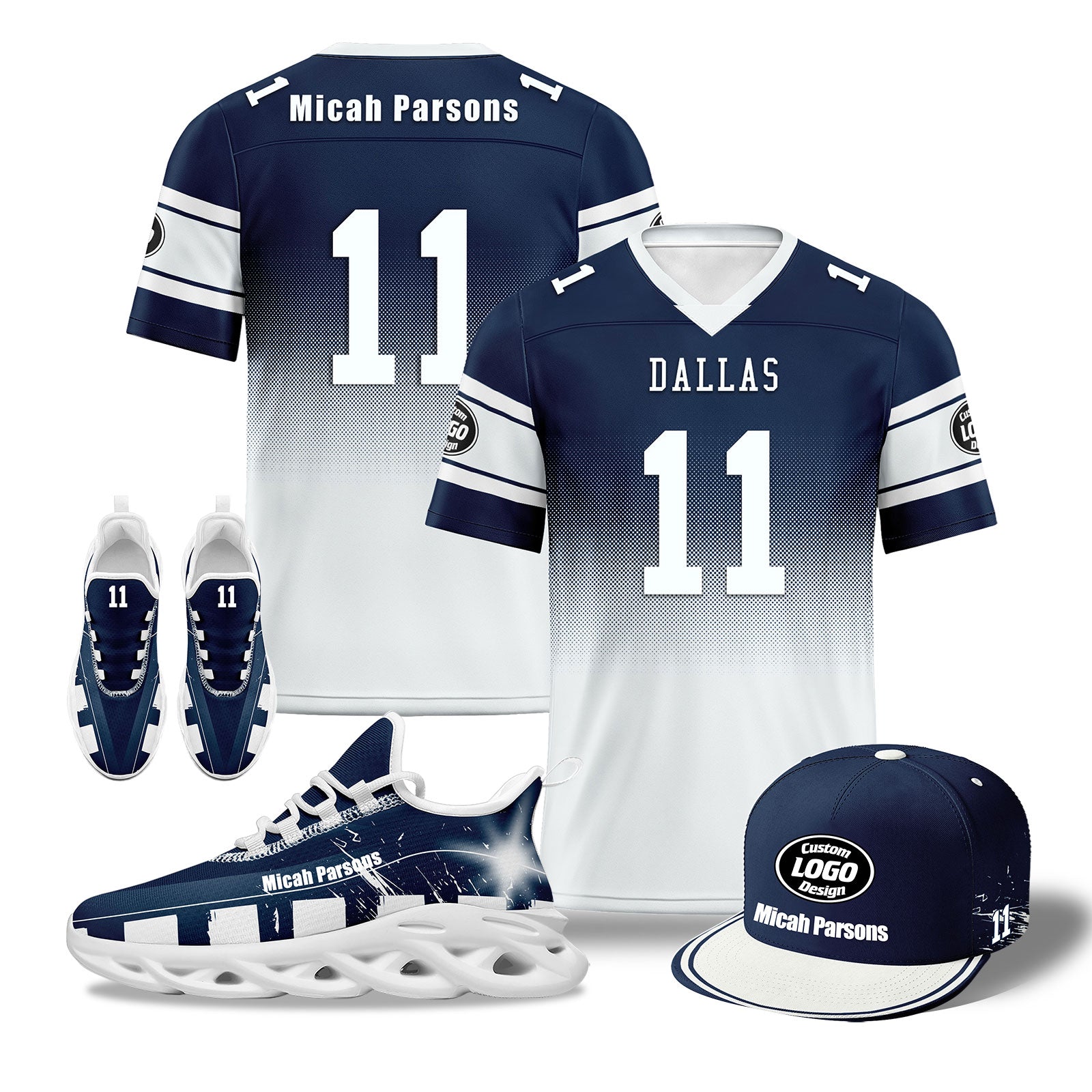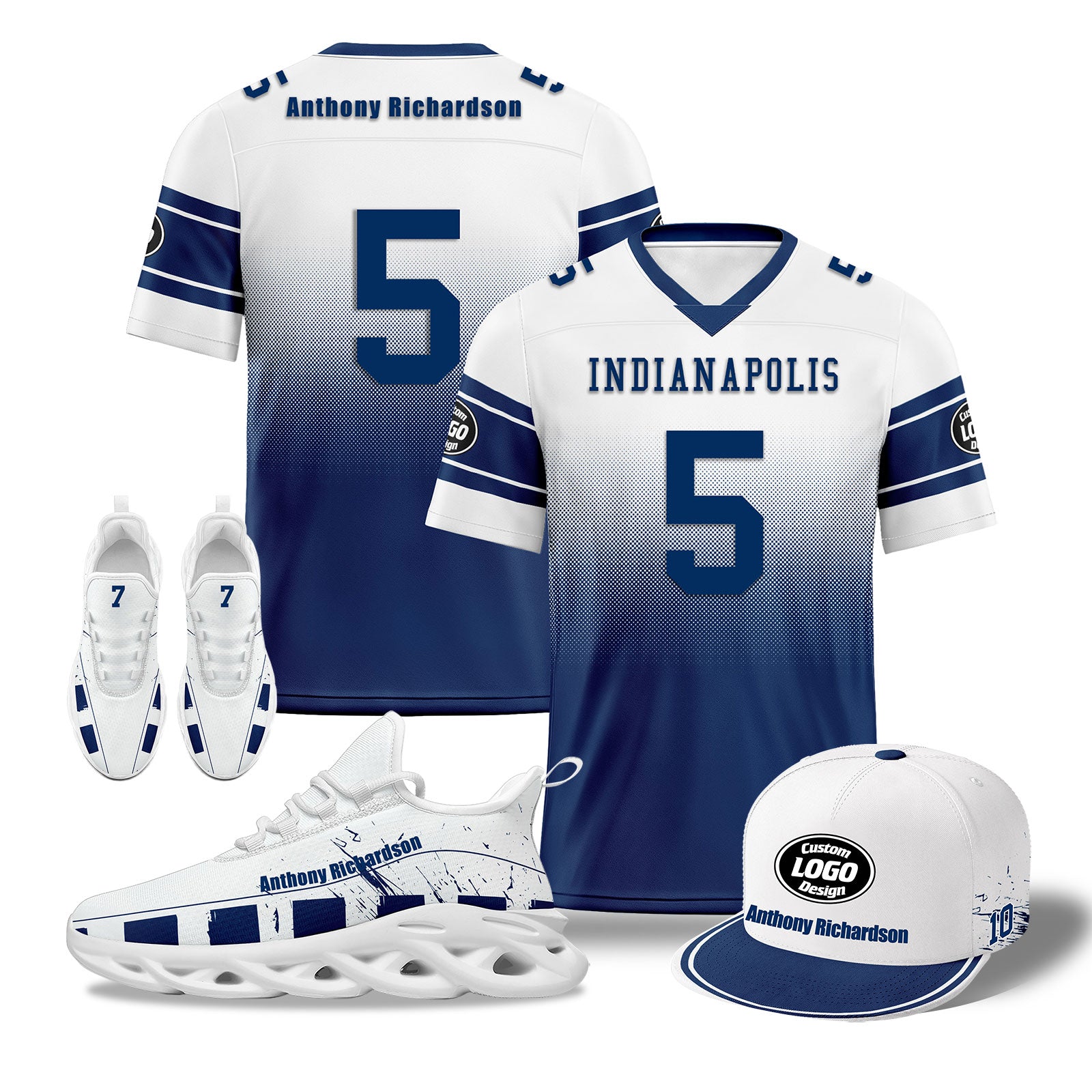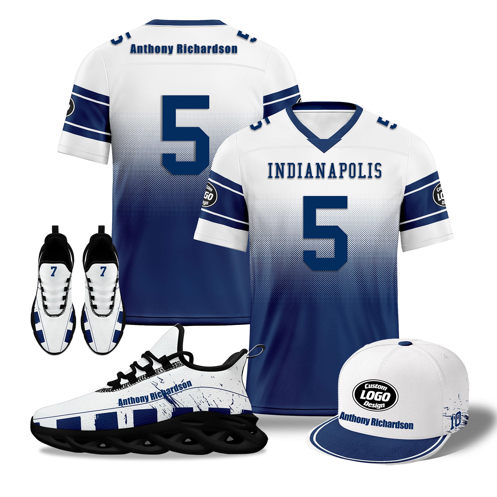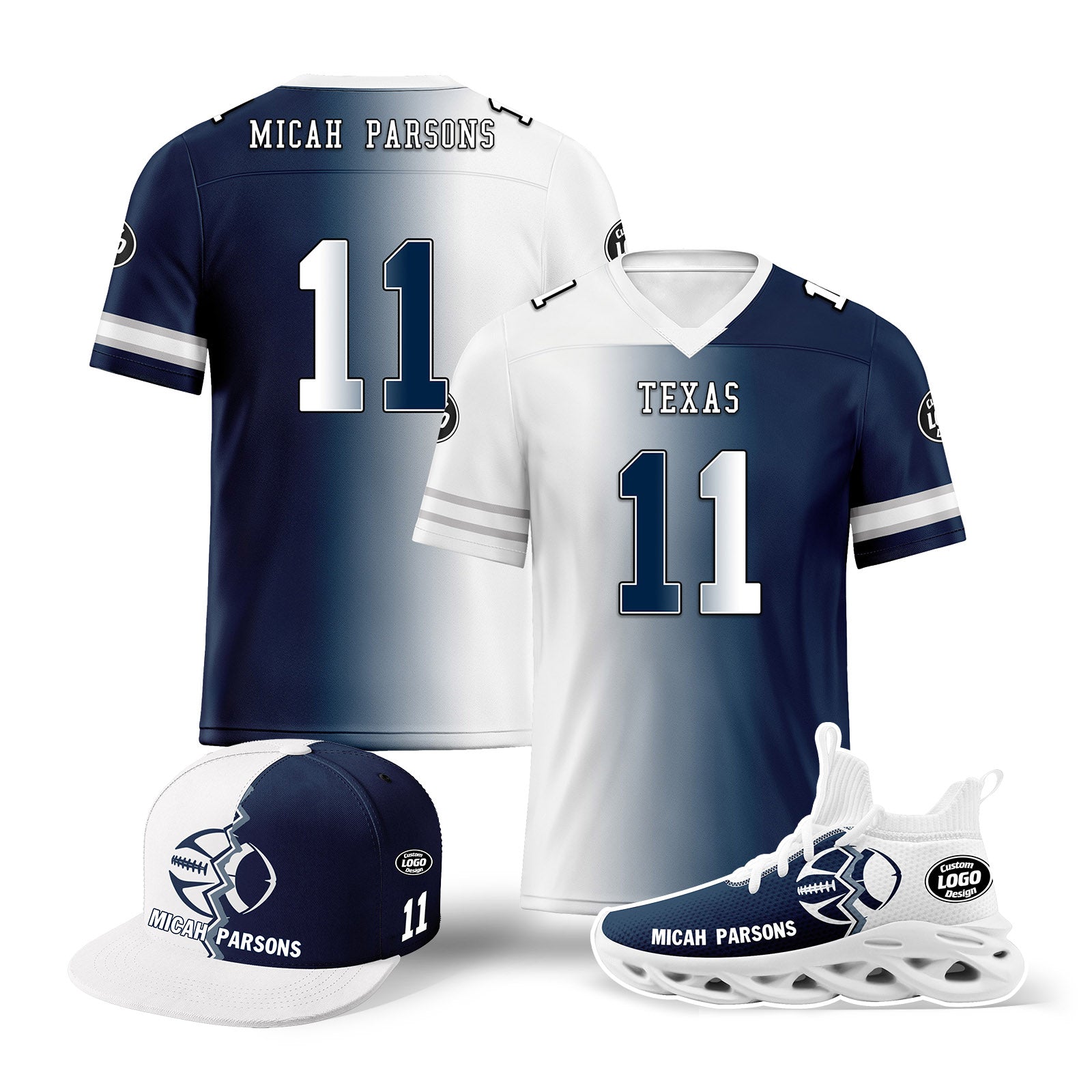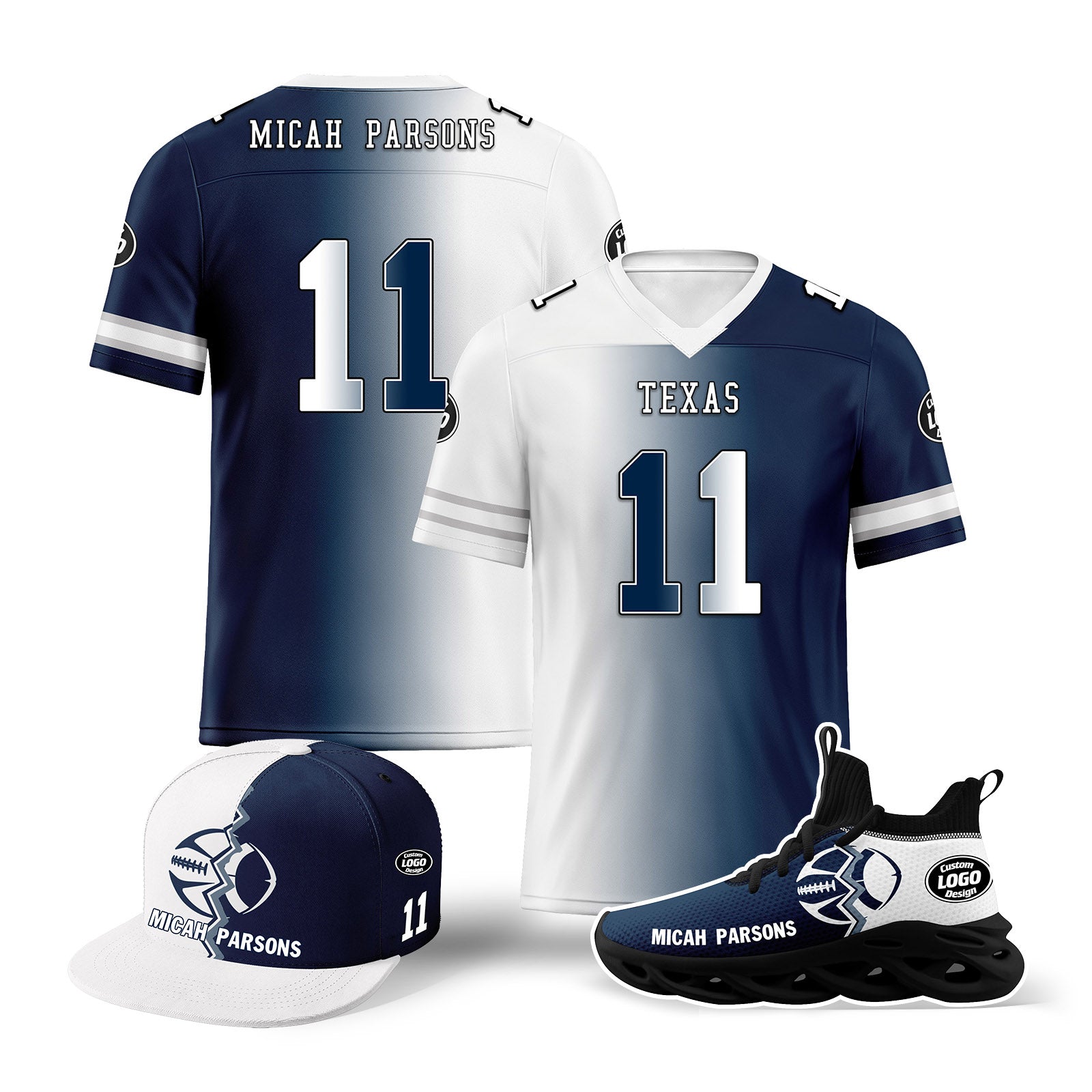 Custom Deep Blue White Texas Football Jersey MaxSoul Shoes and Hat Combo Offer Personalized Combo ZH-D028018-5