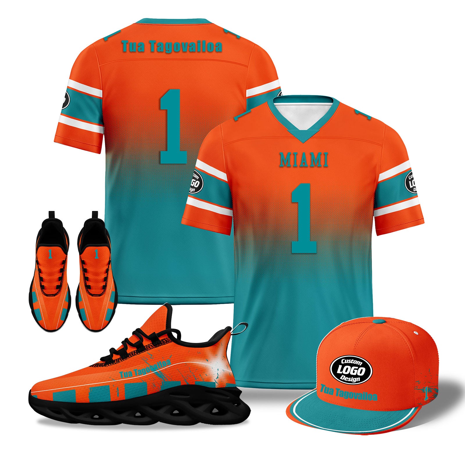 Custom Orange Blue Miami Football MaxSoul Shoes and Hat Combo Offer Personalized Combo ZH-D020268-24