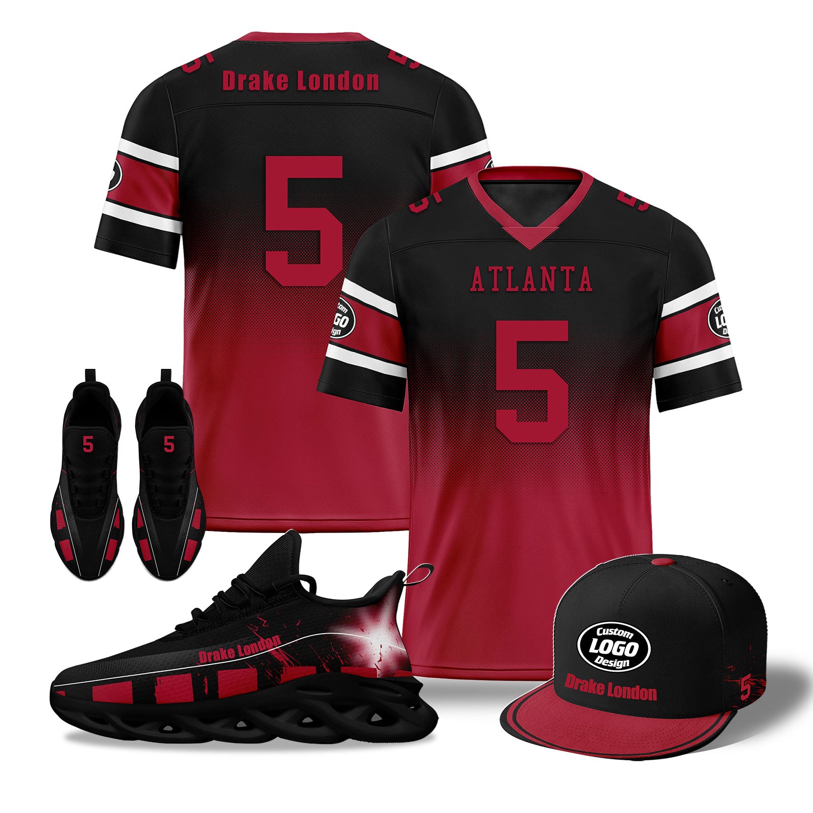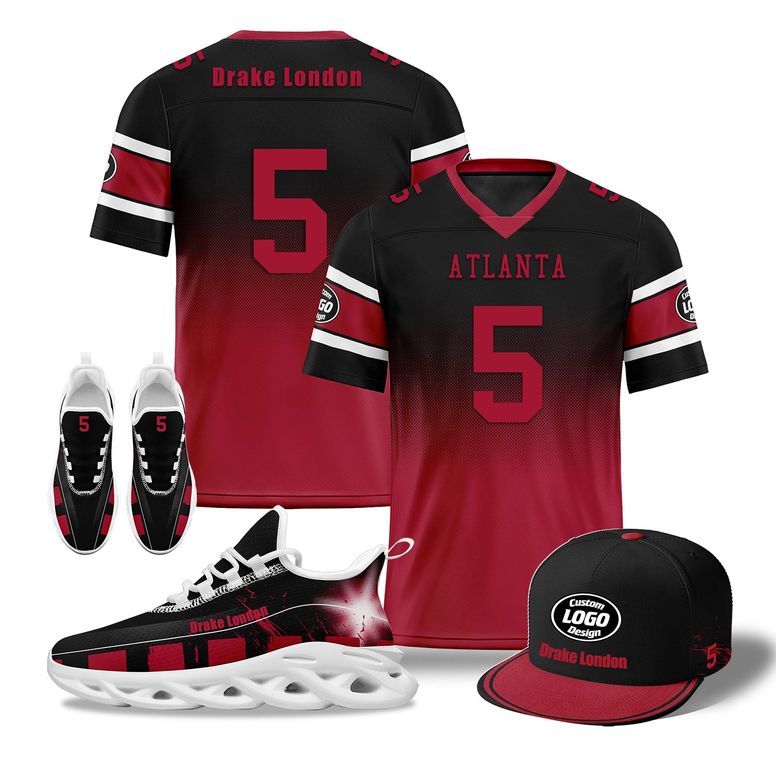Custom Red Black Atlanta Football MaxSoul Shoes and Hat Combo Offer Personalized Combo ZH-D020268-3
