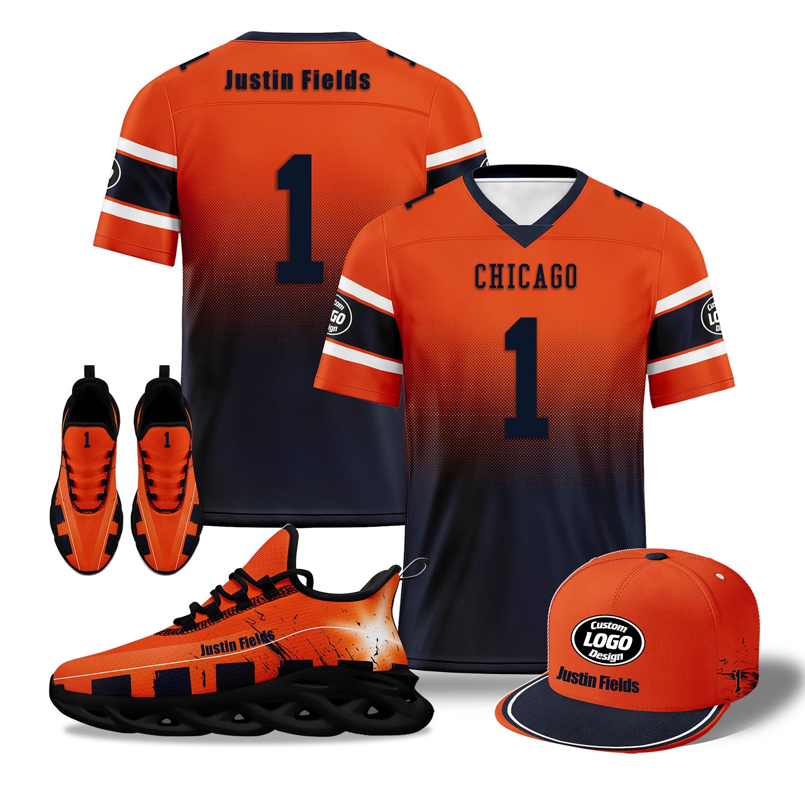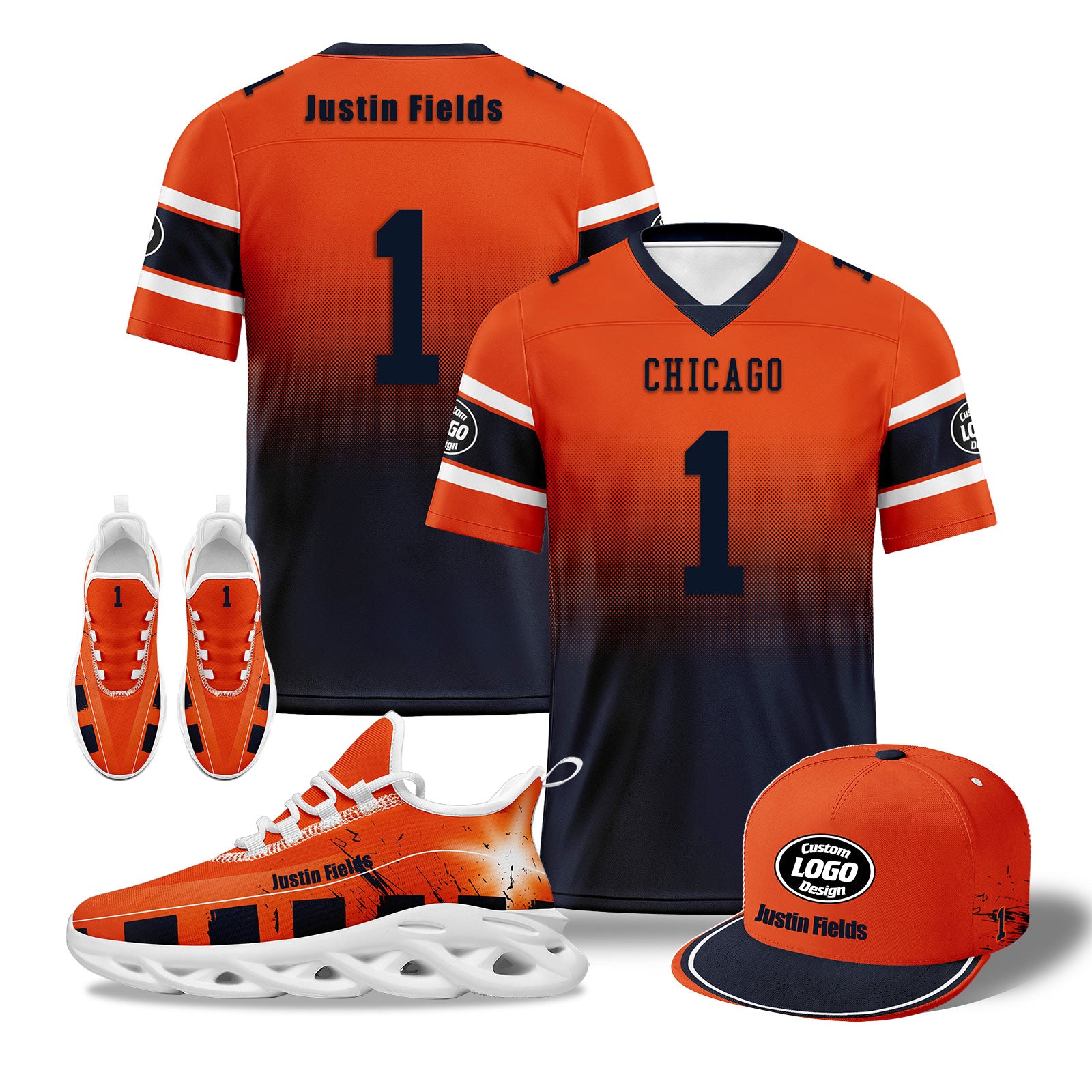 Custom Orange Blue Chicago Football MaxSoul Shoes and Hat Combo Offer Personalized Combo ZH-D020268-7