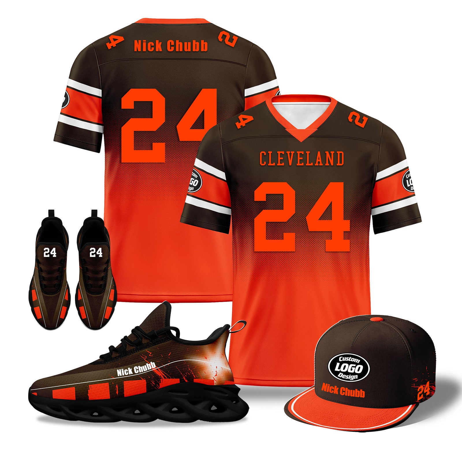 Custom Brown Orange Cleveland Football MaxSoul Shoes and Hat Combo Offer Personalized Combo ZH-D020268-8