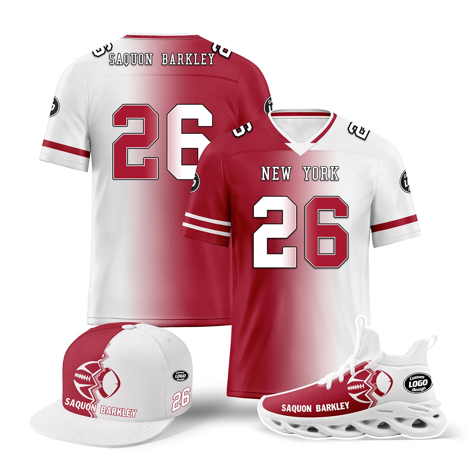 Custom White Red New York Football Jersey MaxSoul Shoes and Hat Combo Offer Personalized Combo ZH-D028018-11