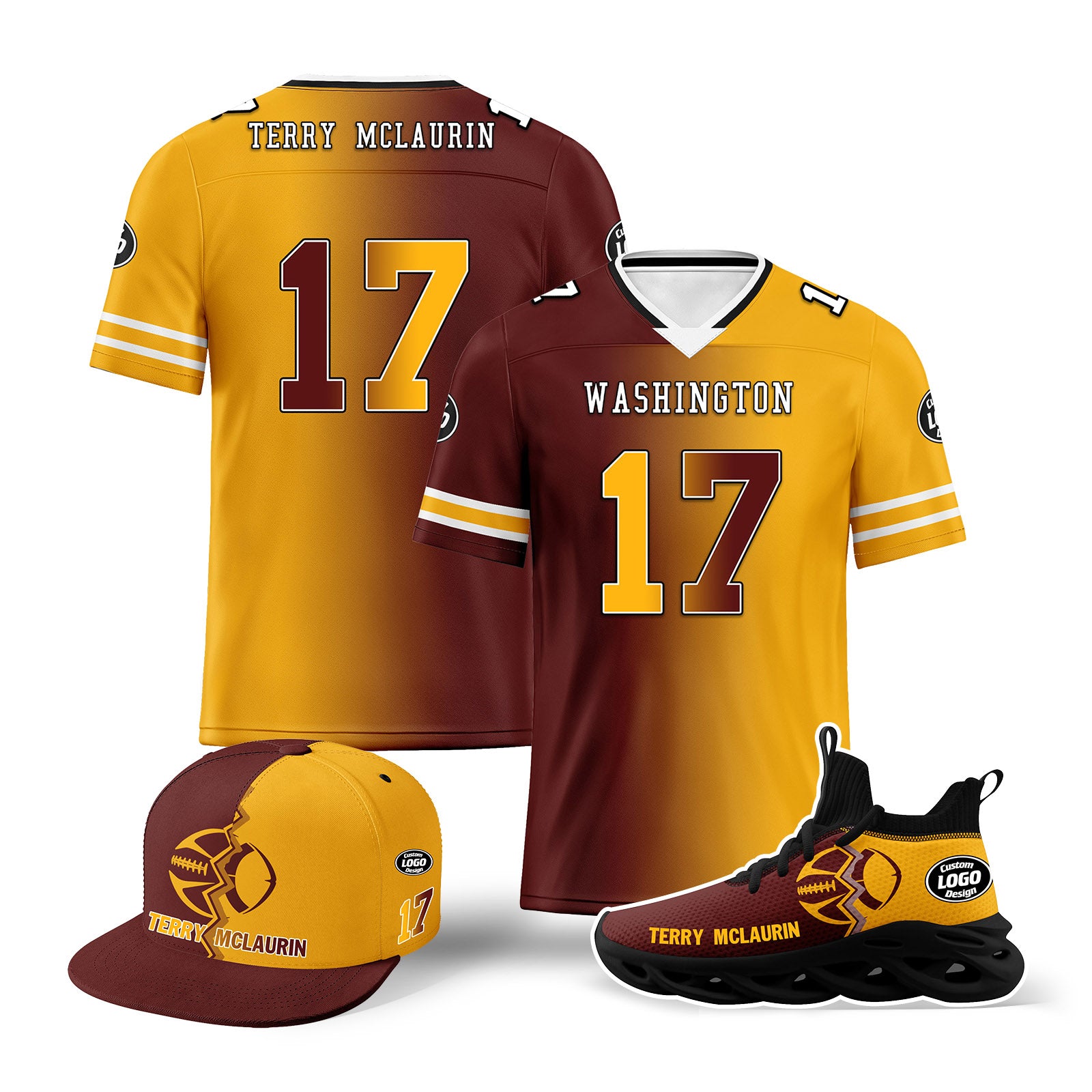 Custom Yellow Red Washington Football Jersey MaxSoul Shoes and Hat Combo Offer Personalized Combo ZH-D028018-16