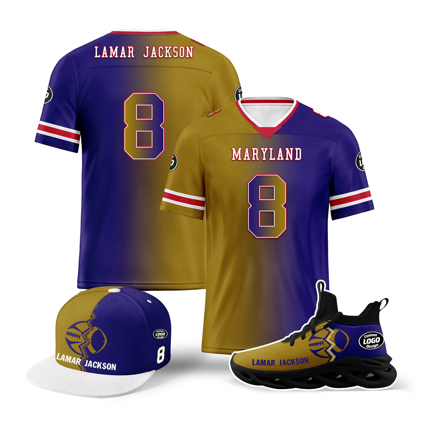 Custom Purple Yellow Maryland Football Jersey MaxSoul Shoes and Hat Combo Offer Personalized Combo ZH-D028018-17