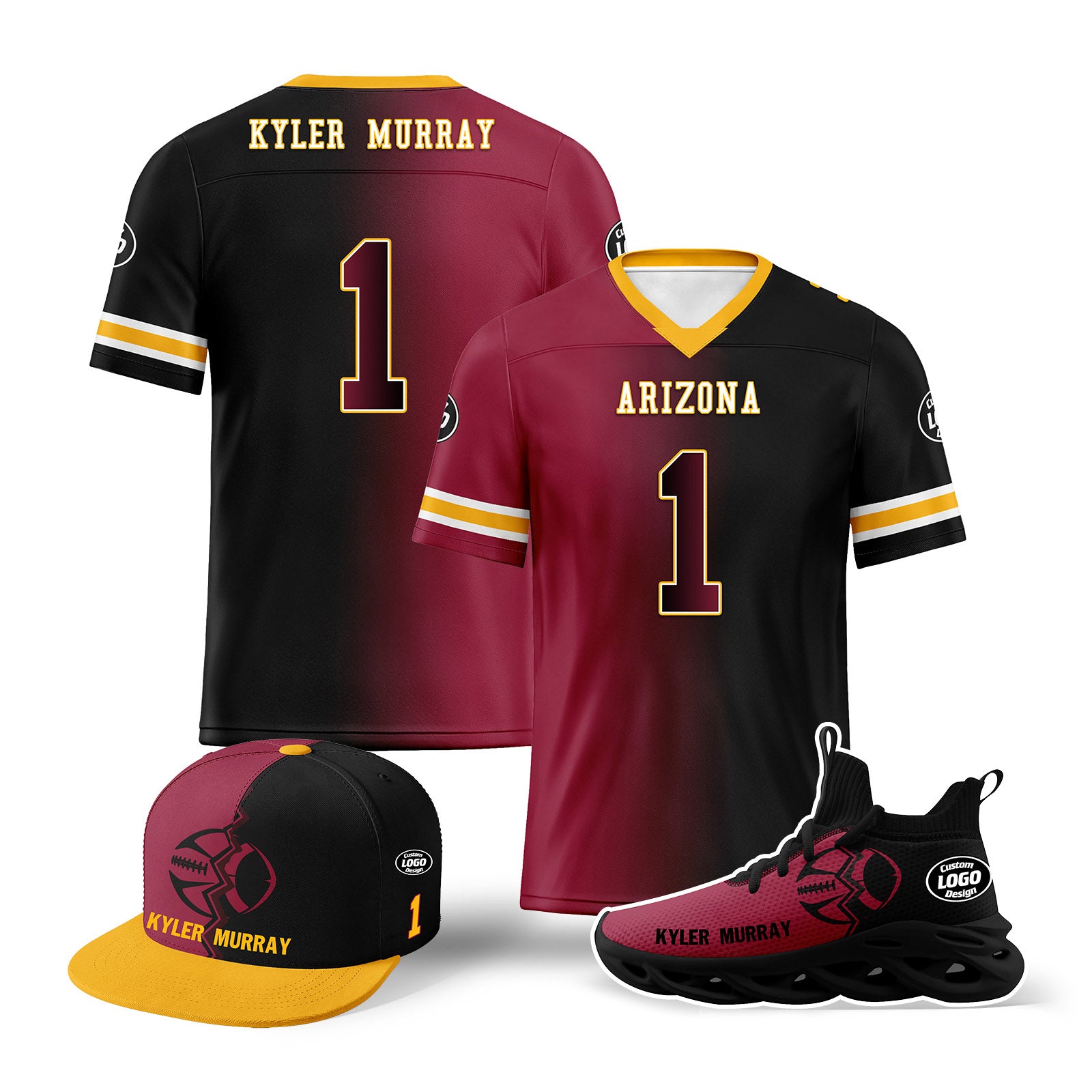 Custom Red Black Arizona Football Jersey MaxSoul Shoes and Hat Combo Offer Personalized Combo ZH-D028018-1