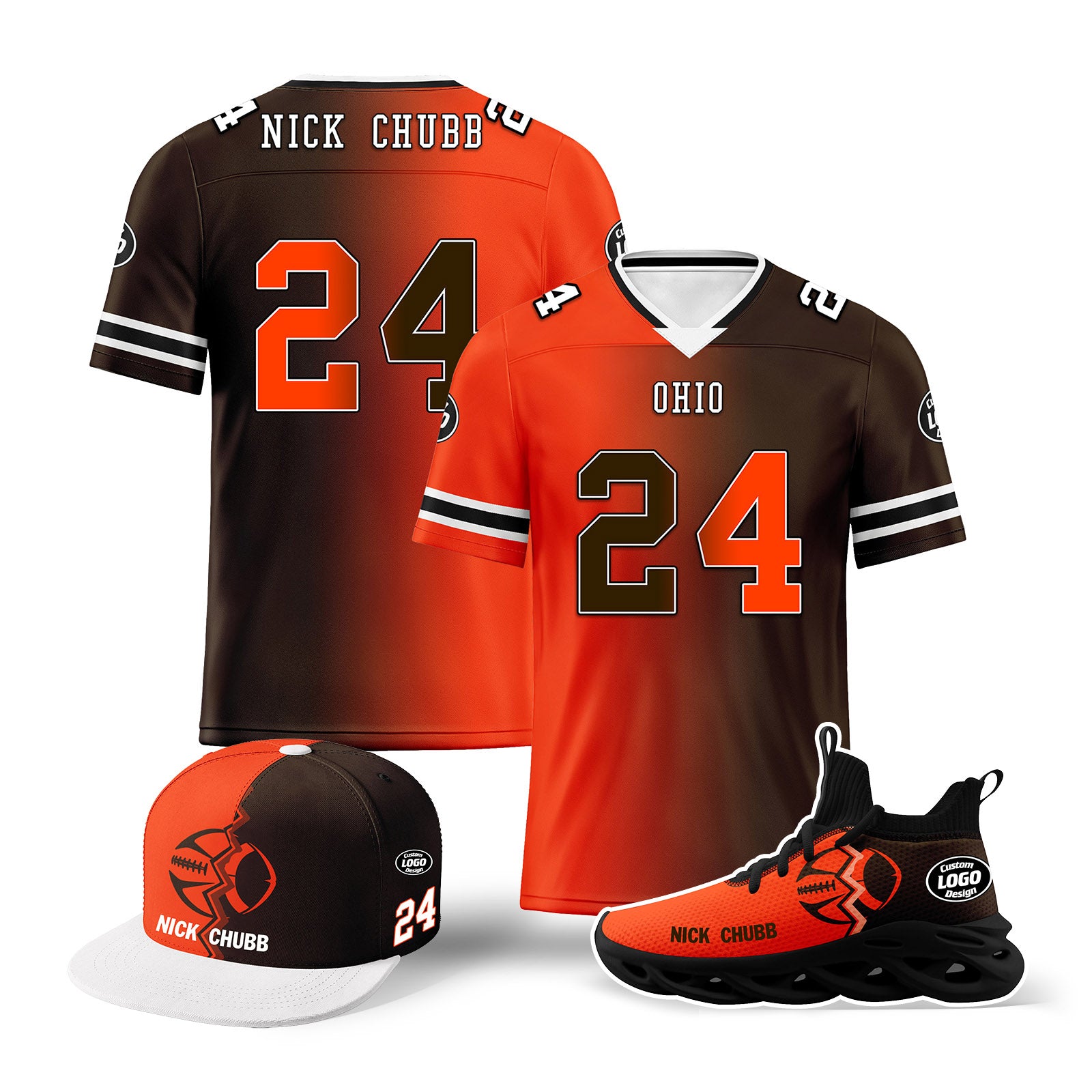 Custom Orange Brownish Red Ohio Football Jersey MaxSoul Shoes and Hat Combo Offer Personalized Combo ZH-D028018-20