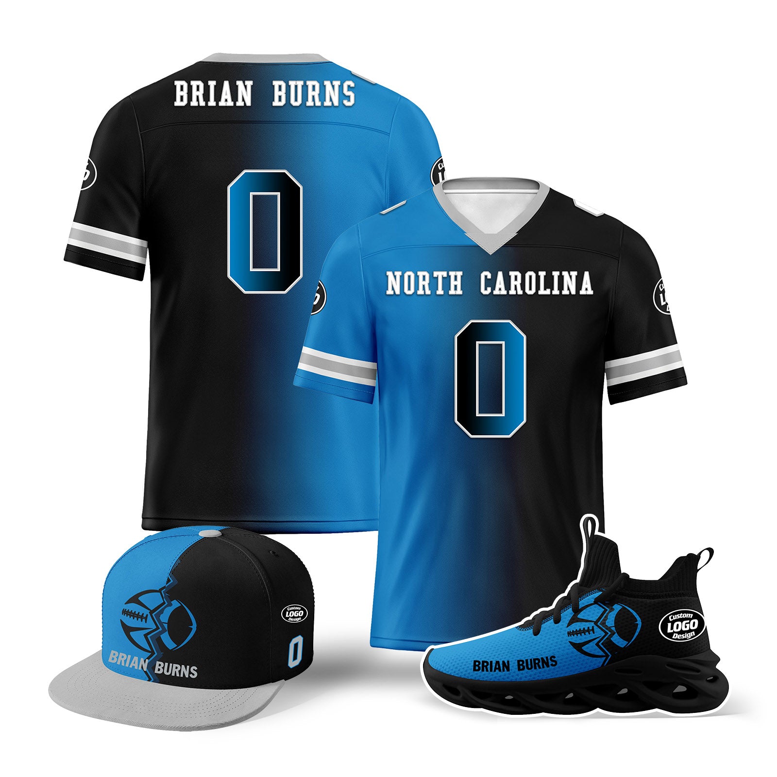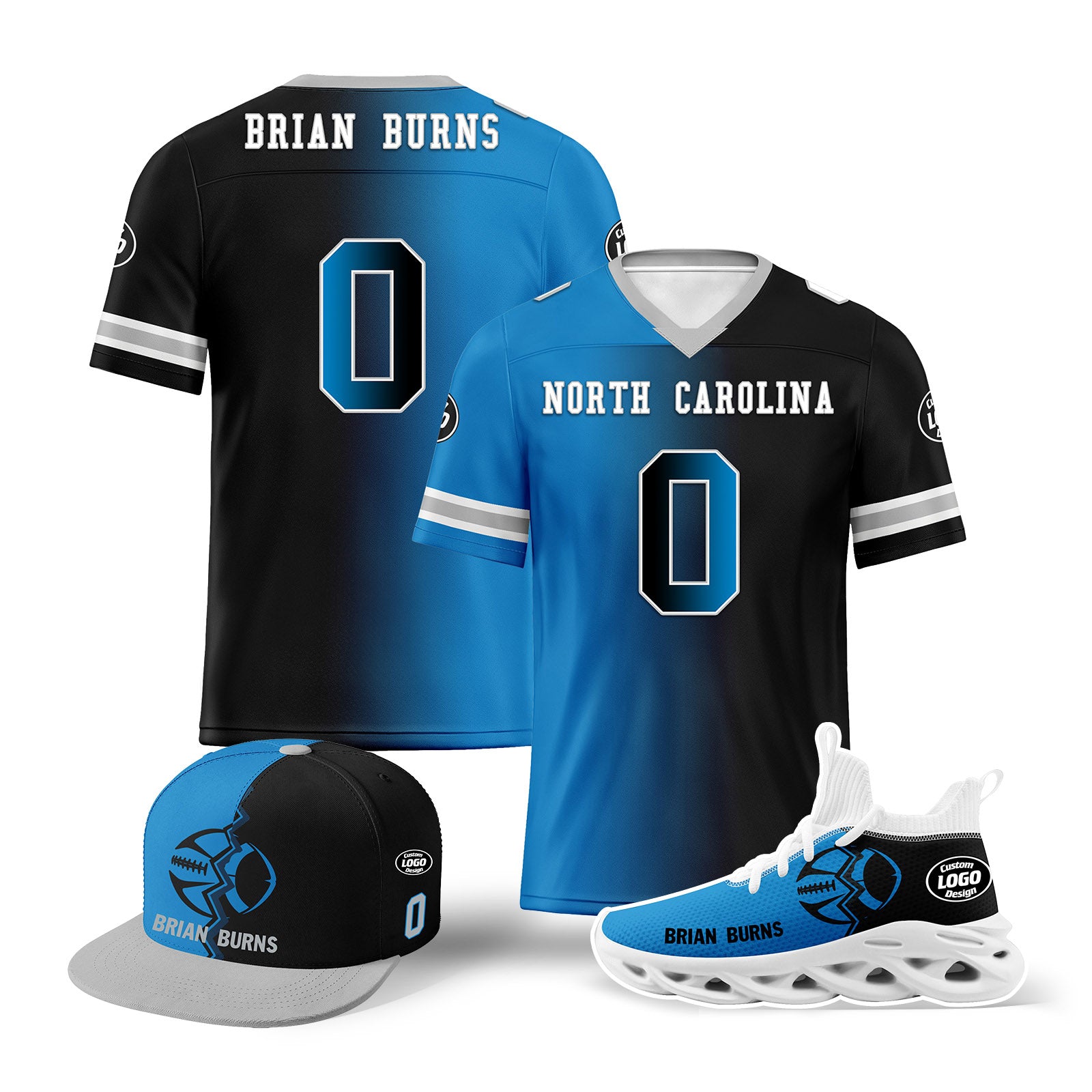 Custom Blue Black North Carolina Football Jersey MaxSoul Shoes and Hat Combo Offer Personalized Combo ZH-D028018-3