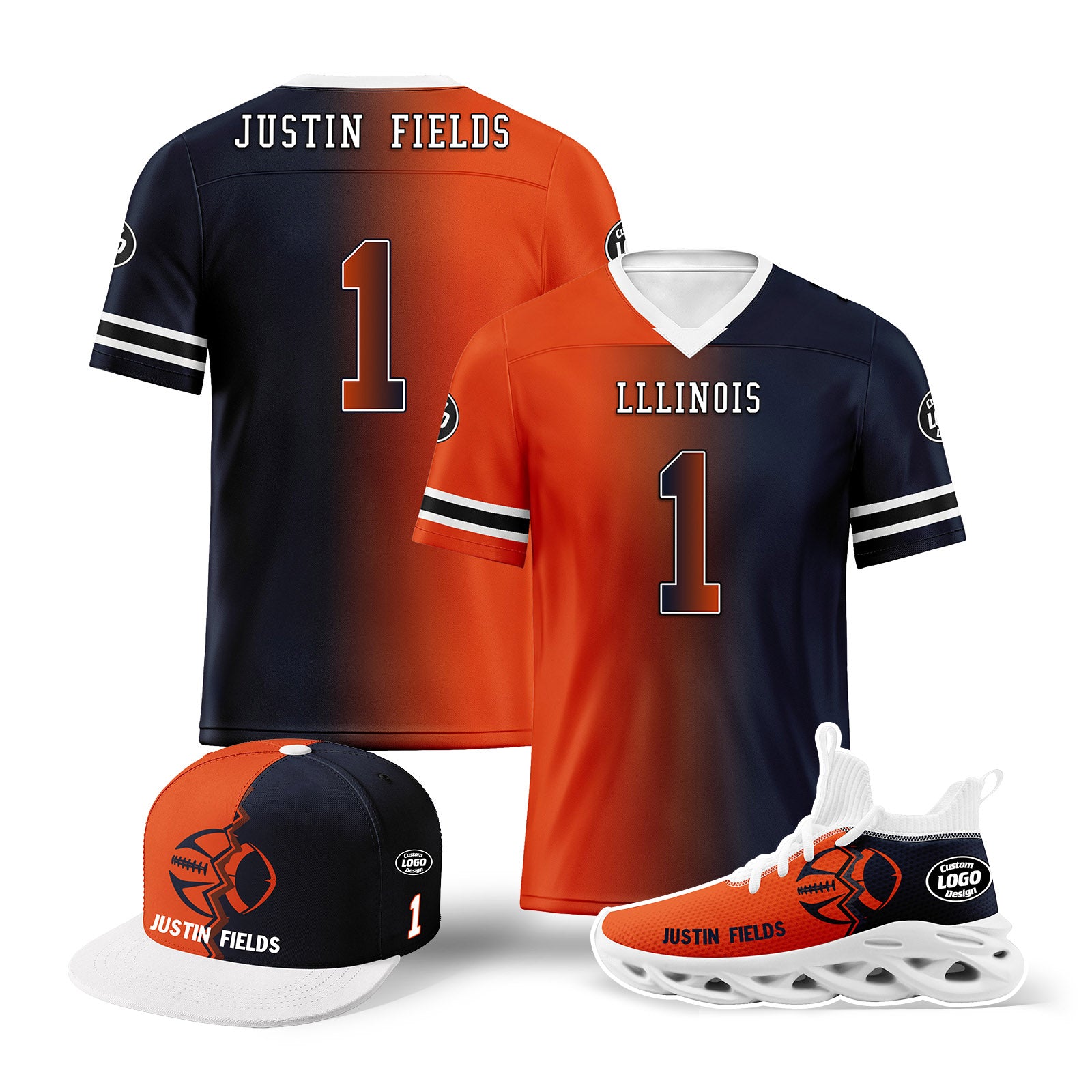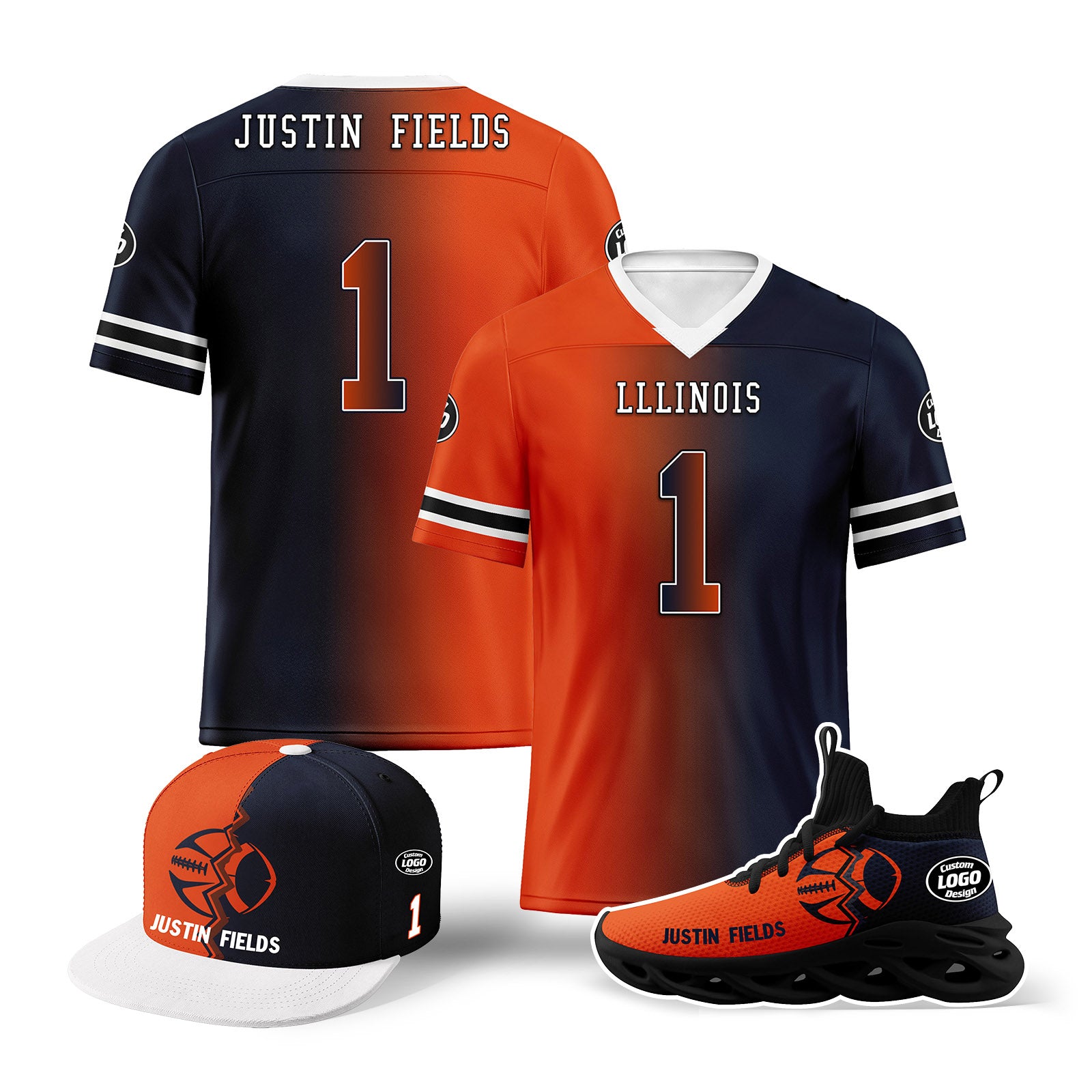 Custom Deep Blue Orange Illinois Football Jersey MaxSoul Shoes and Hat Combo Offer Personalized Combo ZH-D028018-4