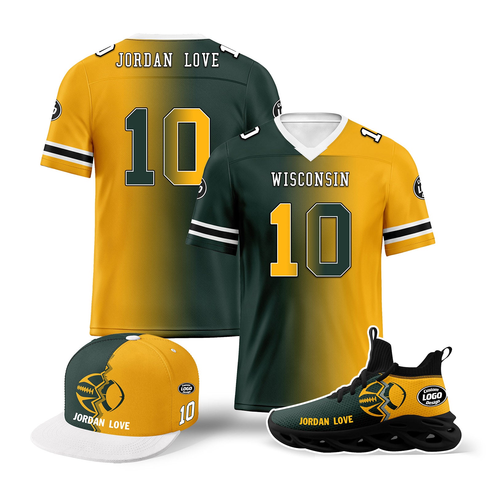 Custom Yellow Green Wisconsin Football Jersey MaxSoul Shoes and Hat Combo Offer Personalized Combo ZH-D028018-7