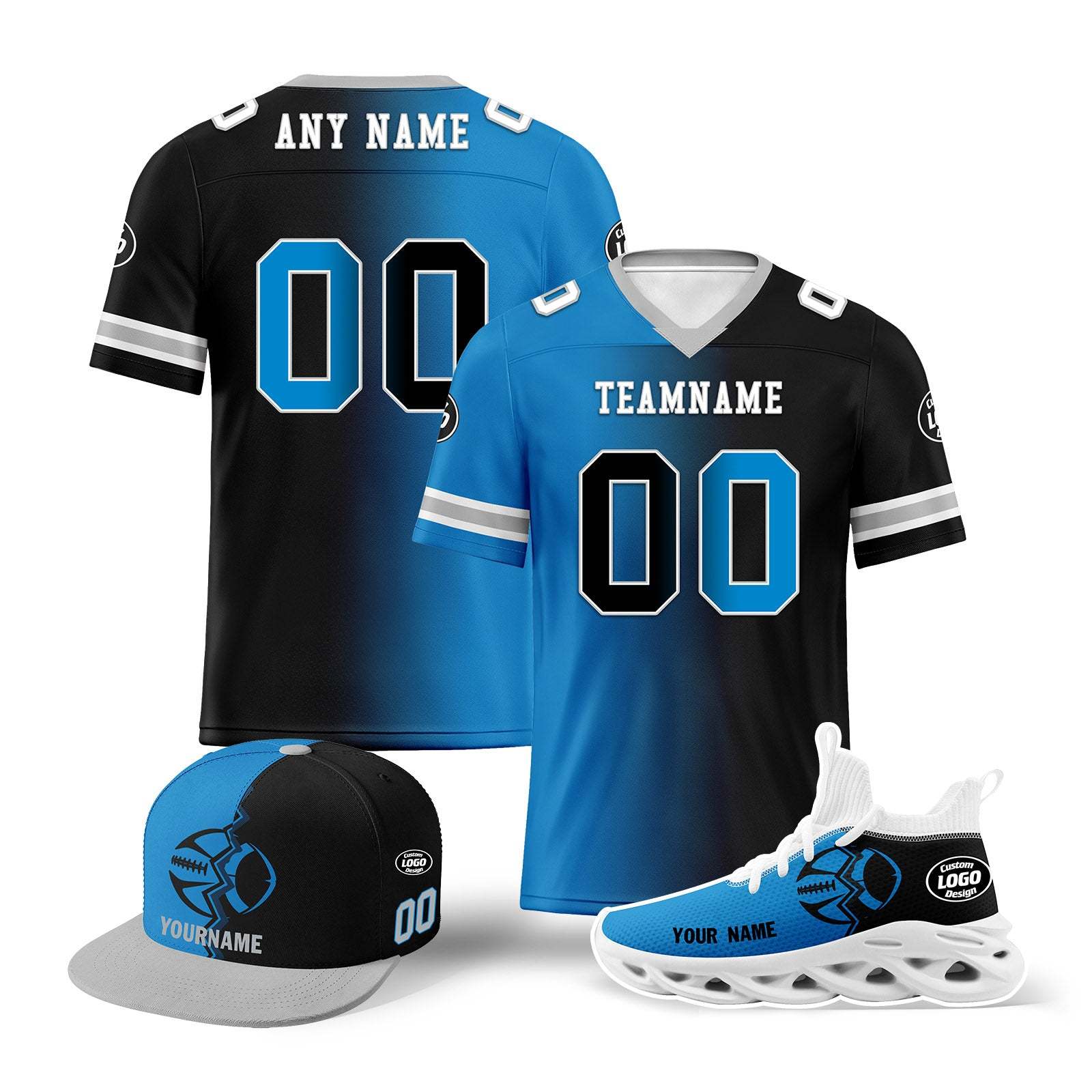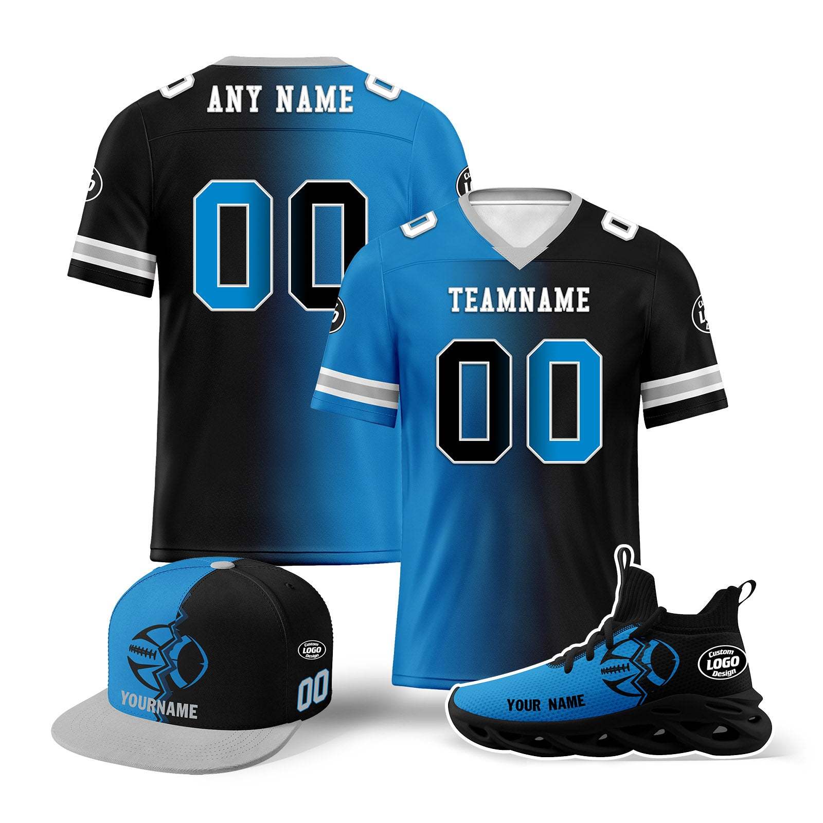 Custom Blue Black North Carolina Football Jersey MaxSoul Shoes and Hat Combo Offer Personalized Combo ZH-D028018-3