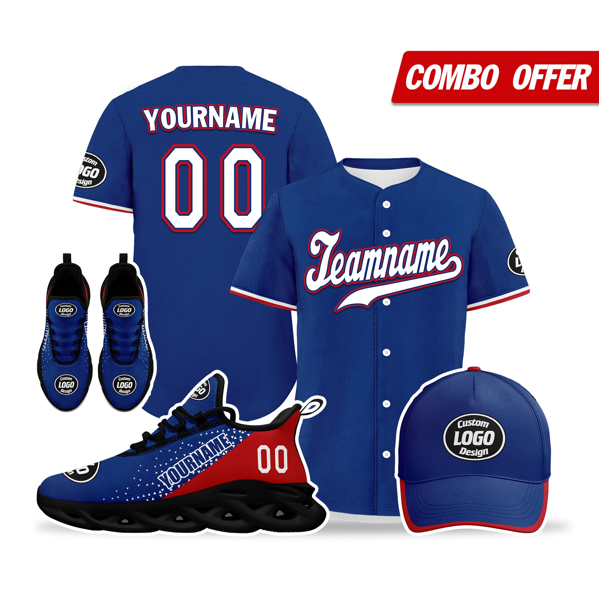 Custom Blue Red Jersey MaxSoul Shoes and Hat Combo Offer Personalized ZH-D0b009b-b