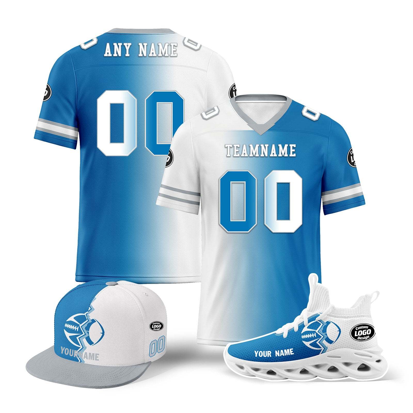 Custom Blue White Michigan Football Jersey MaxSoul Shoes and Hat Combo Offer Personalized Combo ZH-D028018-6