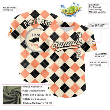 Custom Cream Black 3D Pattern Design Father's Day Mustache Authentic Baseball Jersey