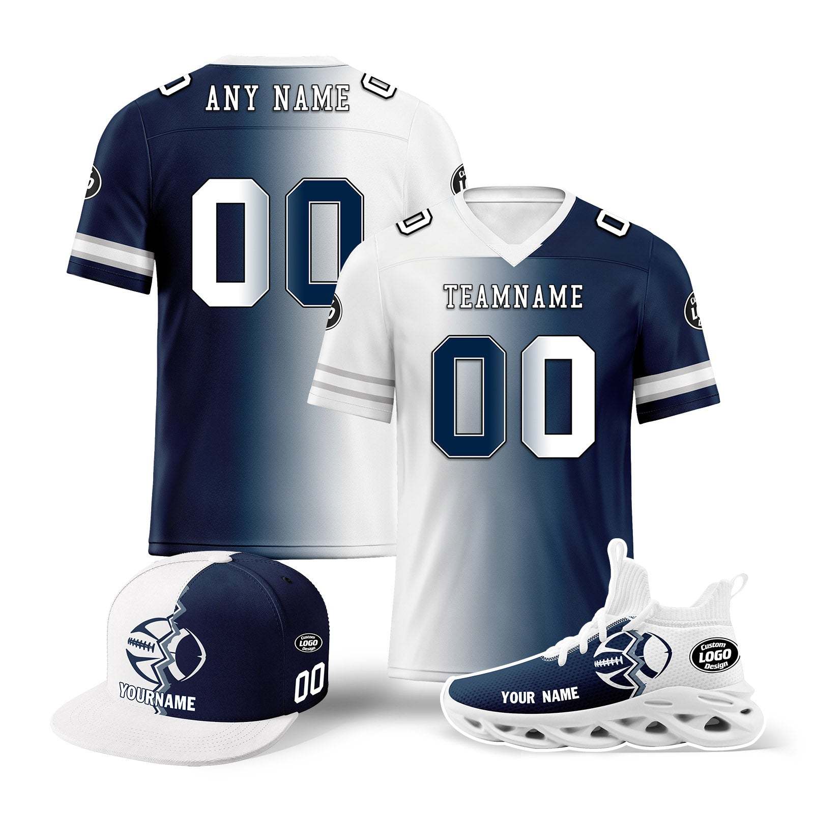 Custom Deep Blue White Texas Football Jersey MaxSoul Shoes and Hat Combo Offer Personalized Combo ZH-D028018-5