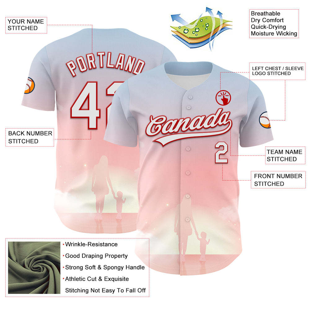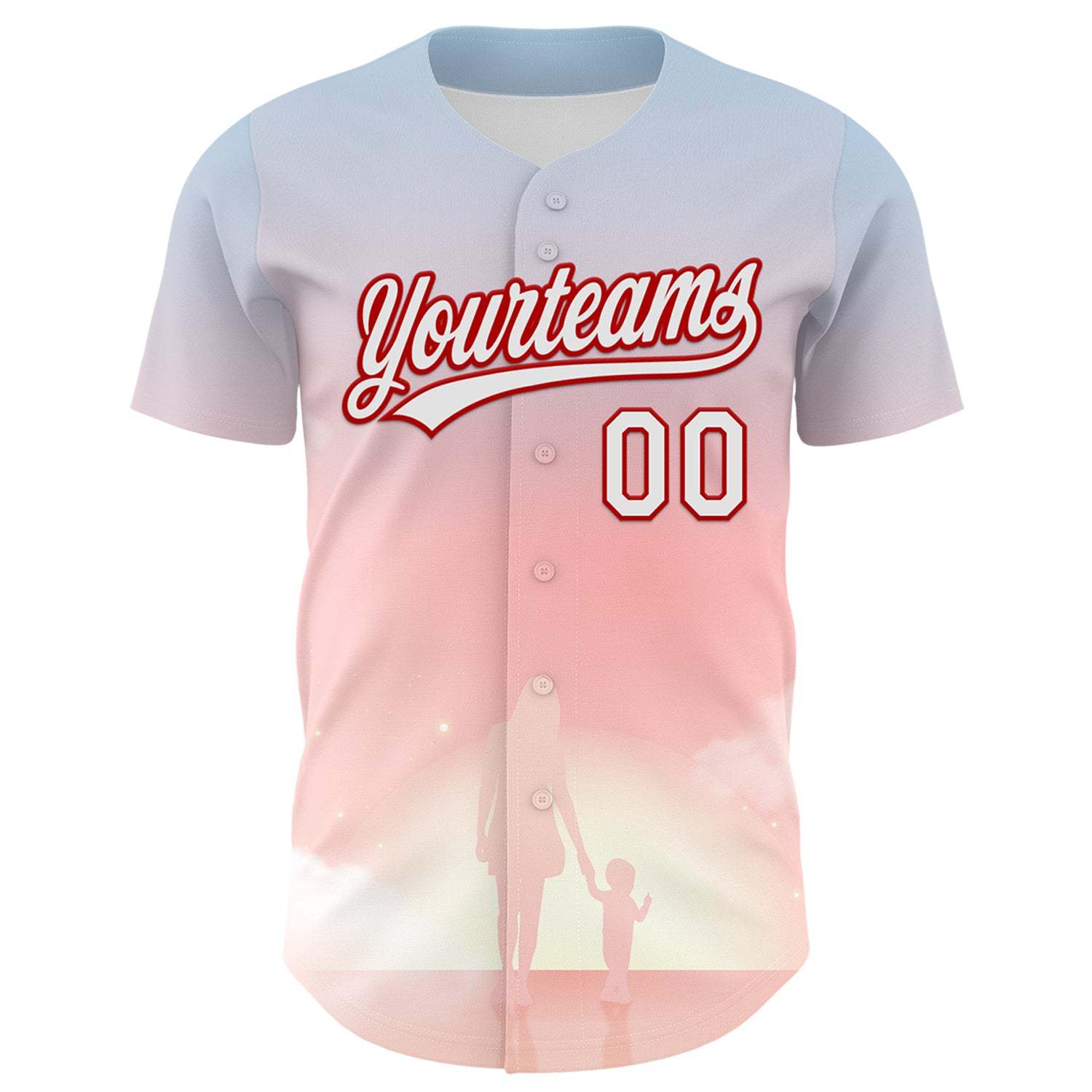 Custom Light Pink White-Red 3D Pattern Design Mother's Day Family Love Authentic Baseball Jersey