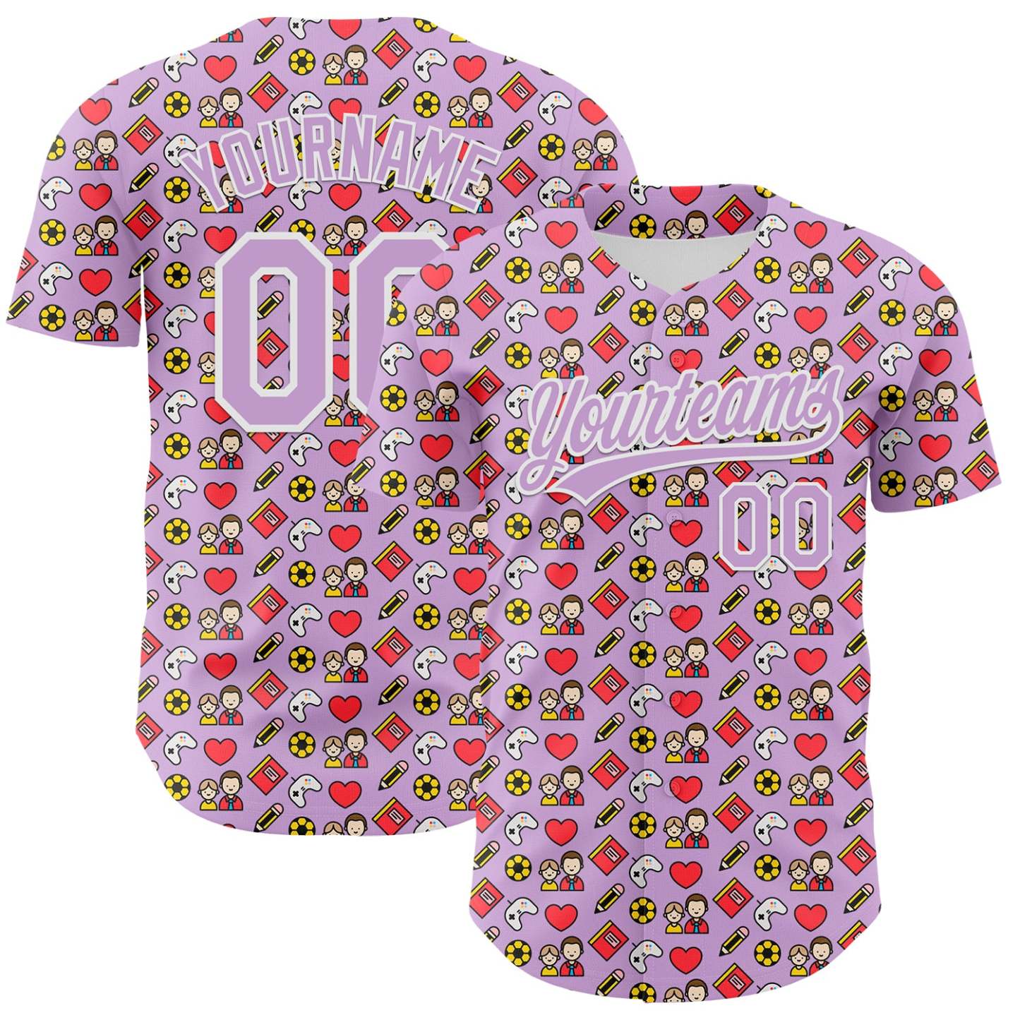 Custom Light Purple White 3D Pattern Design Father's Day Family Love Authentic Baseball Jersey