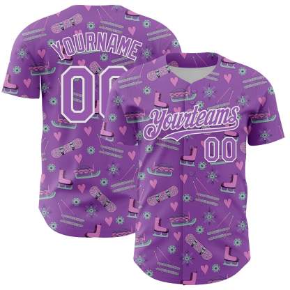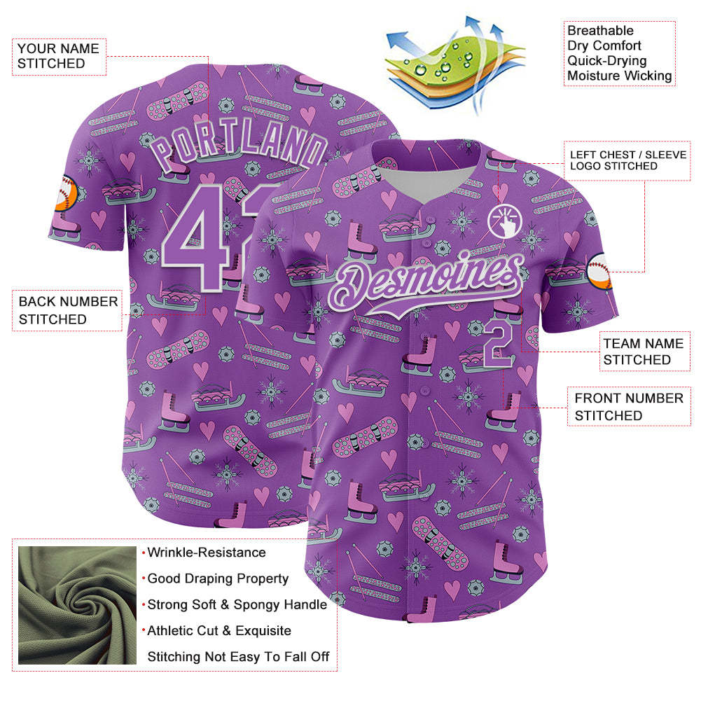 Custom Medium Purple White Comic Doodle Ballgame 3D Pattern Design Authentic Baseball Jersey