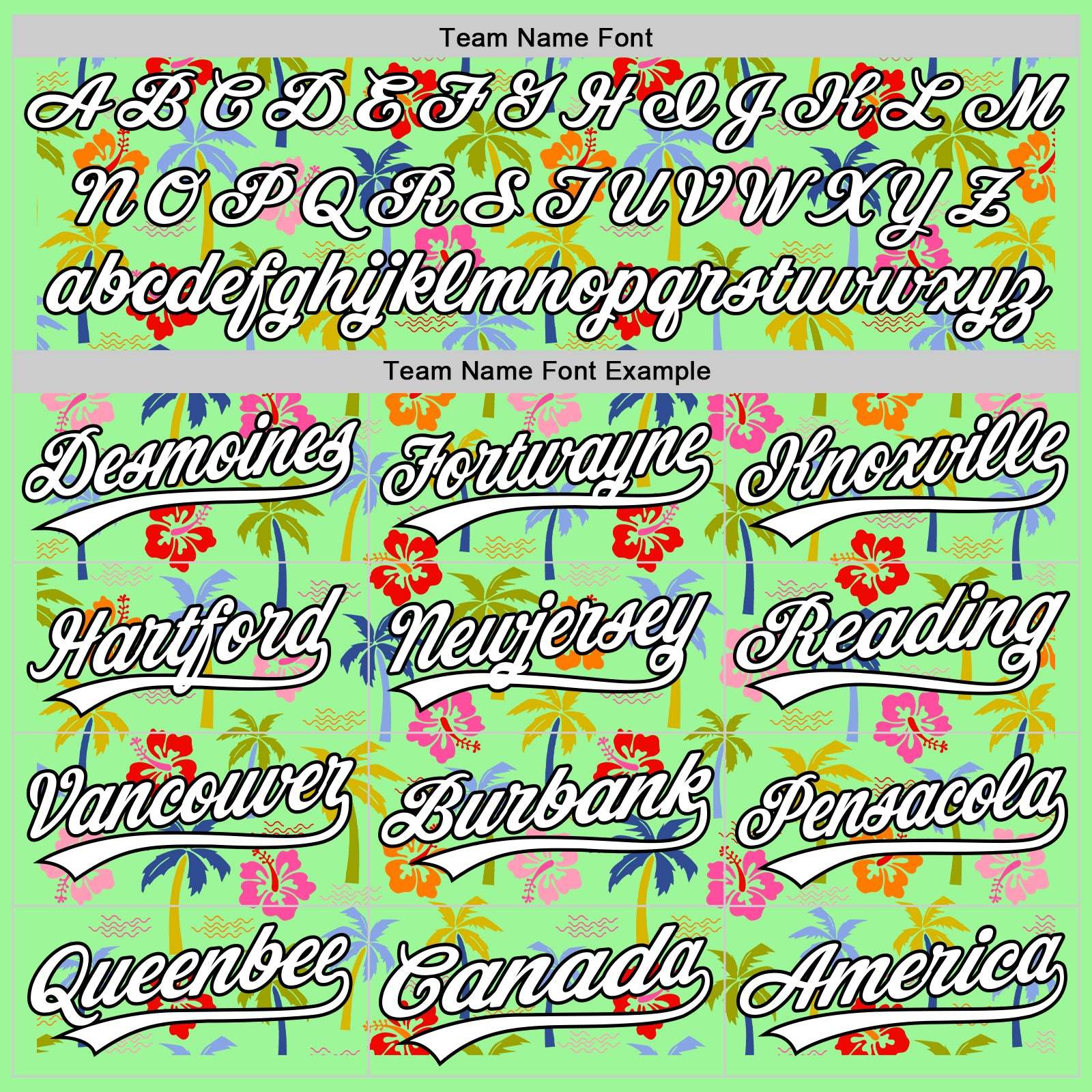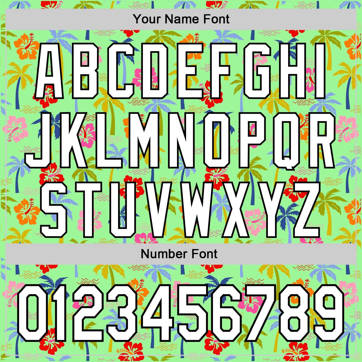 Custom Pea Green White-Black 3D Hawai Tropical Palm Tree And Flower Authentic Baseball Jersey