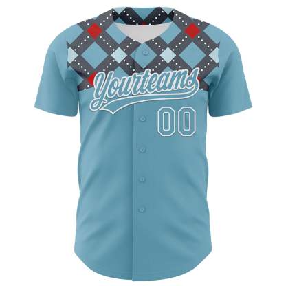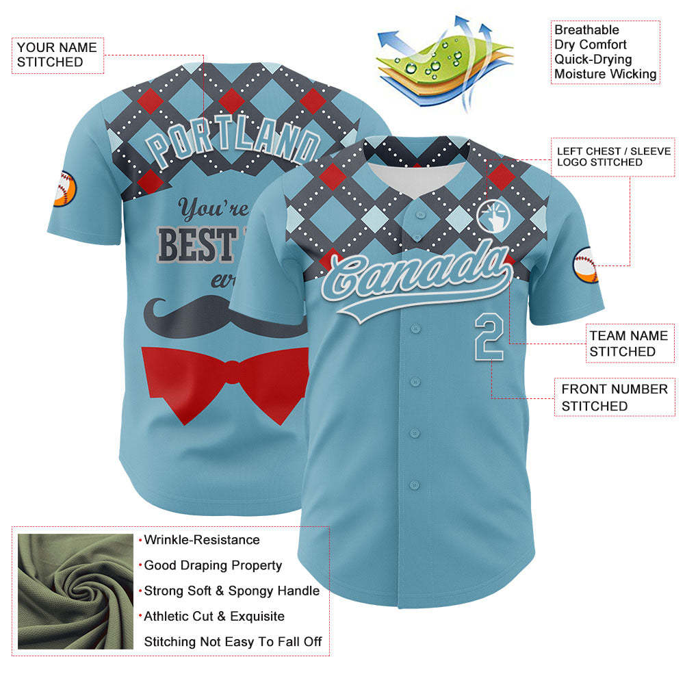 Custom Shadow Blue White 3D Pattern Design Father's Day Mustache Authentic Baseball Jersey