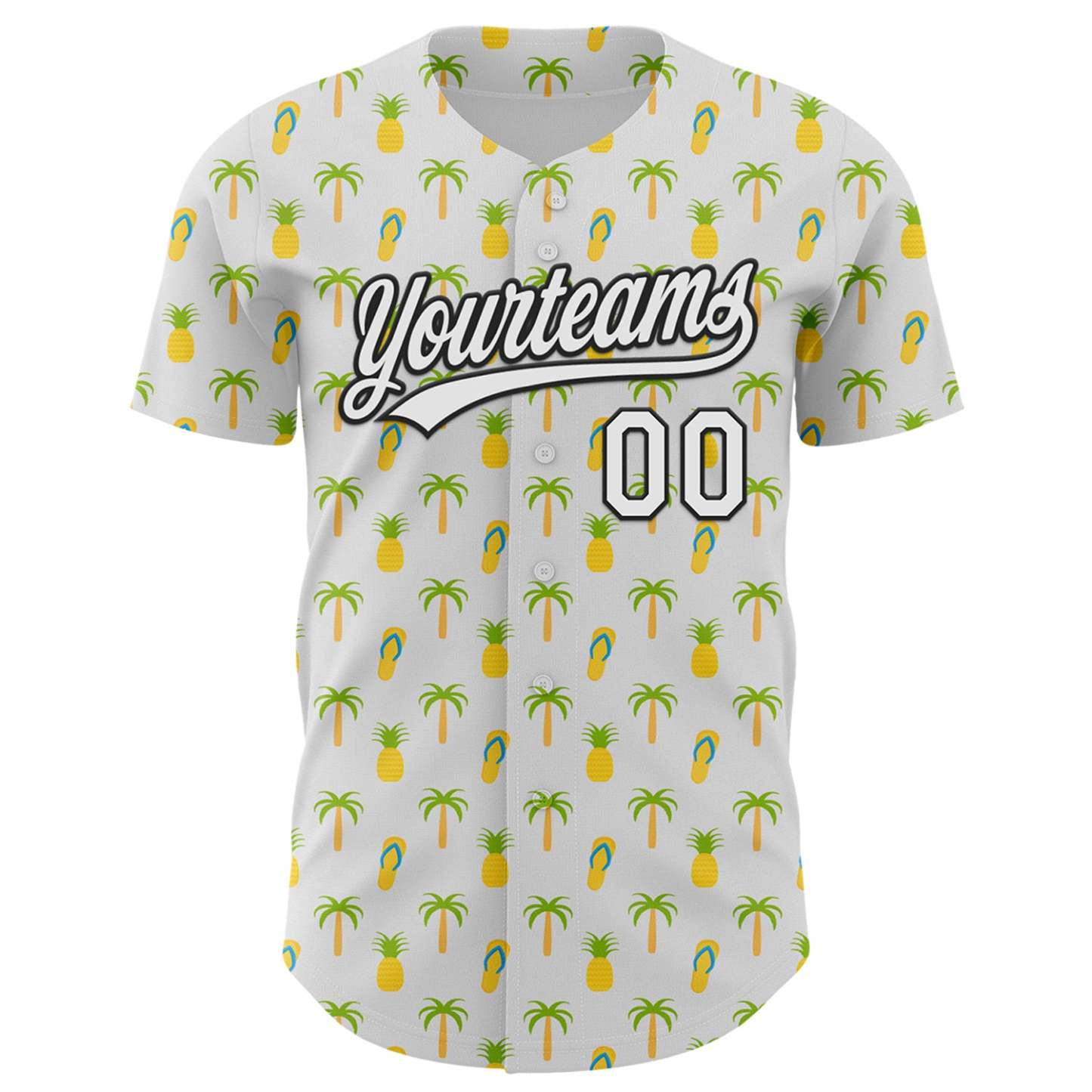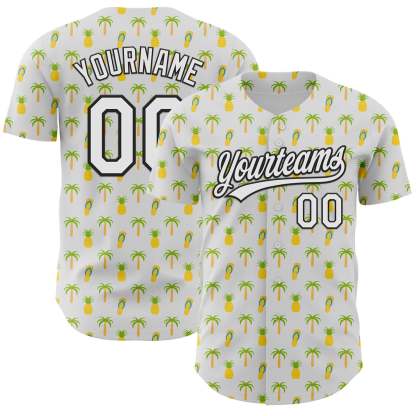 Custom White Black 3D Hawaii Tropical Palm Tree And Fruit Pineapple Authentic Baseball Jersey