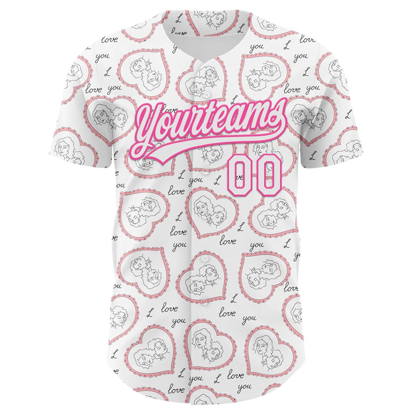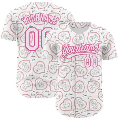 Custom White Pink 3D Pattern Design Mother's Day Love Authentic Baseball Jersey