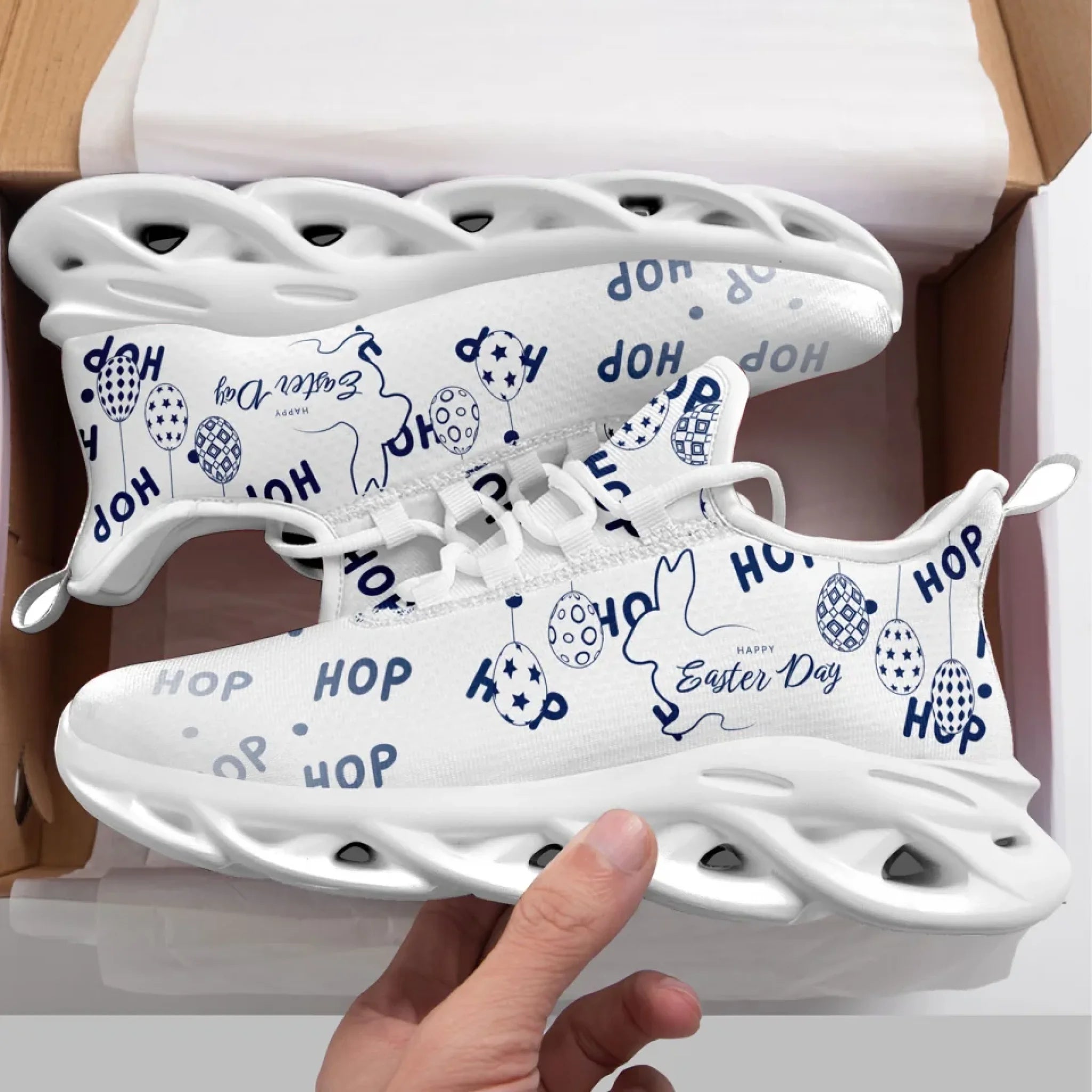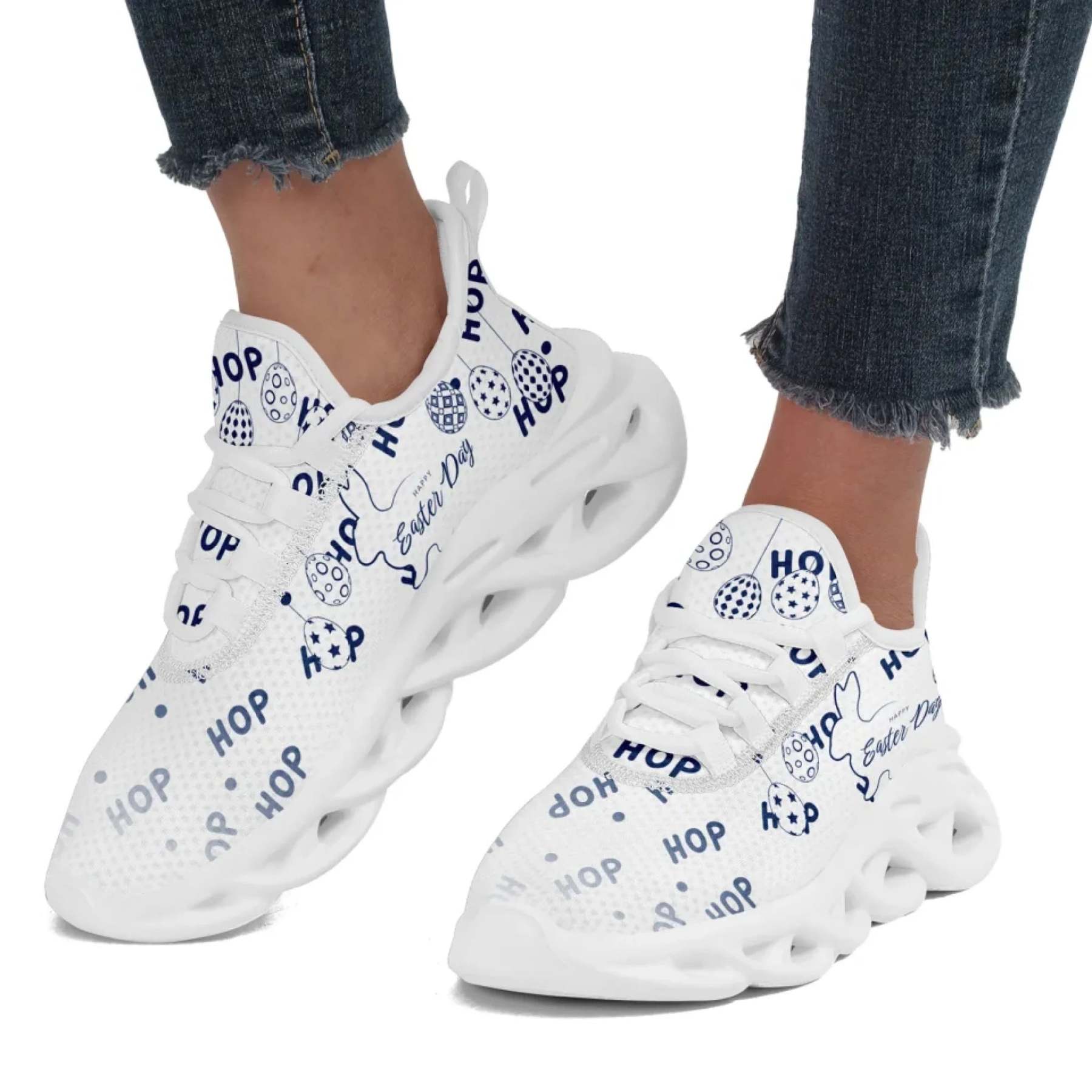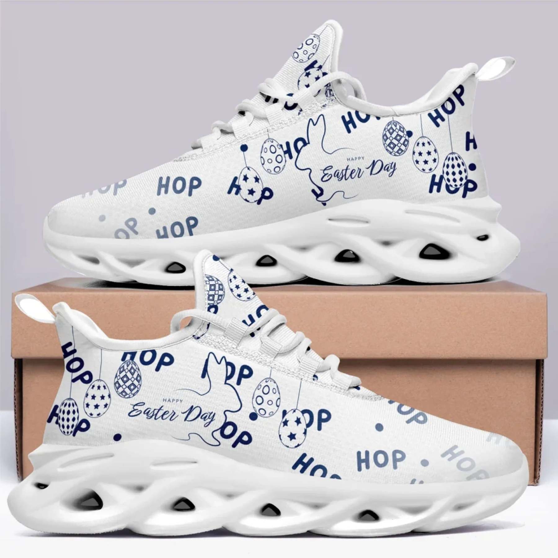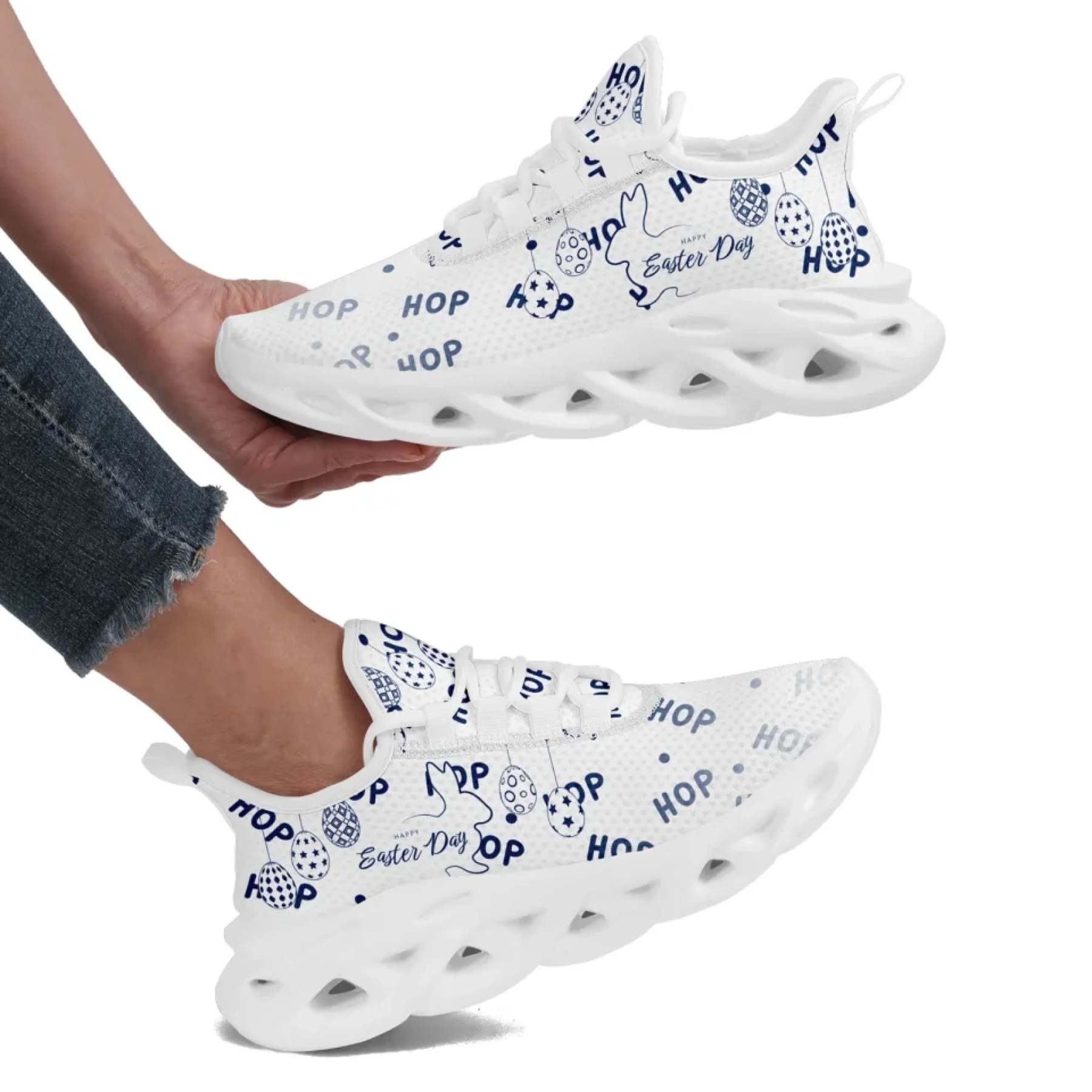 Personalized Easter Bunny Sneakers, Custom Breathable Walking Shoes, Lightweight Running Shoes for Men and Women