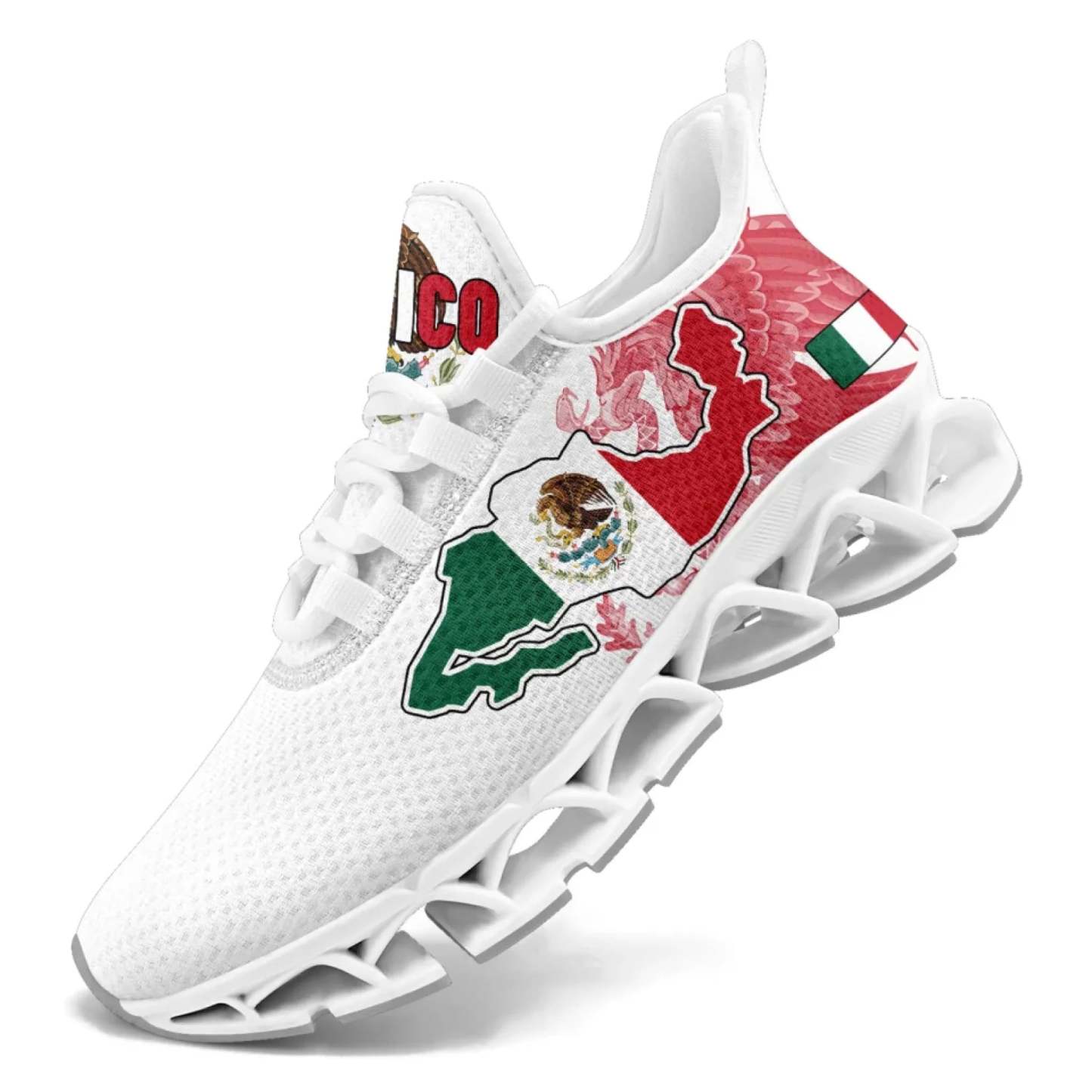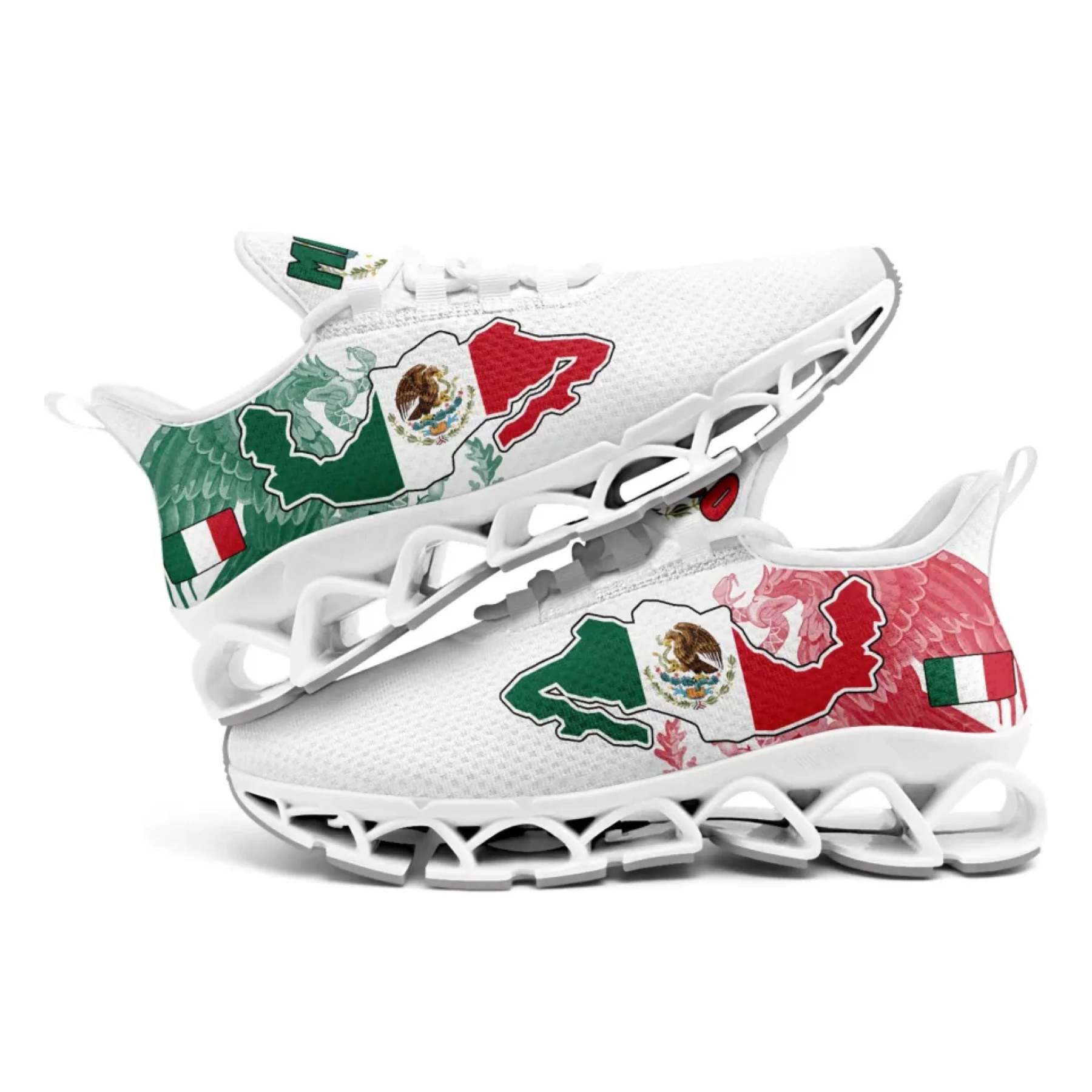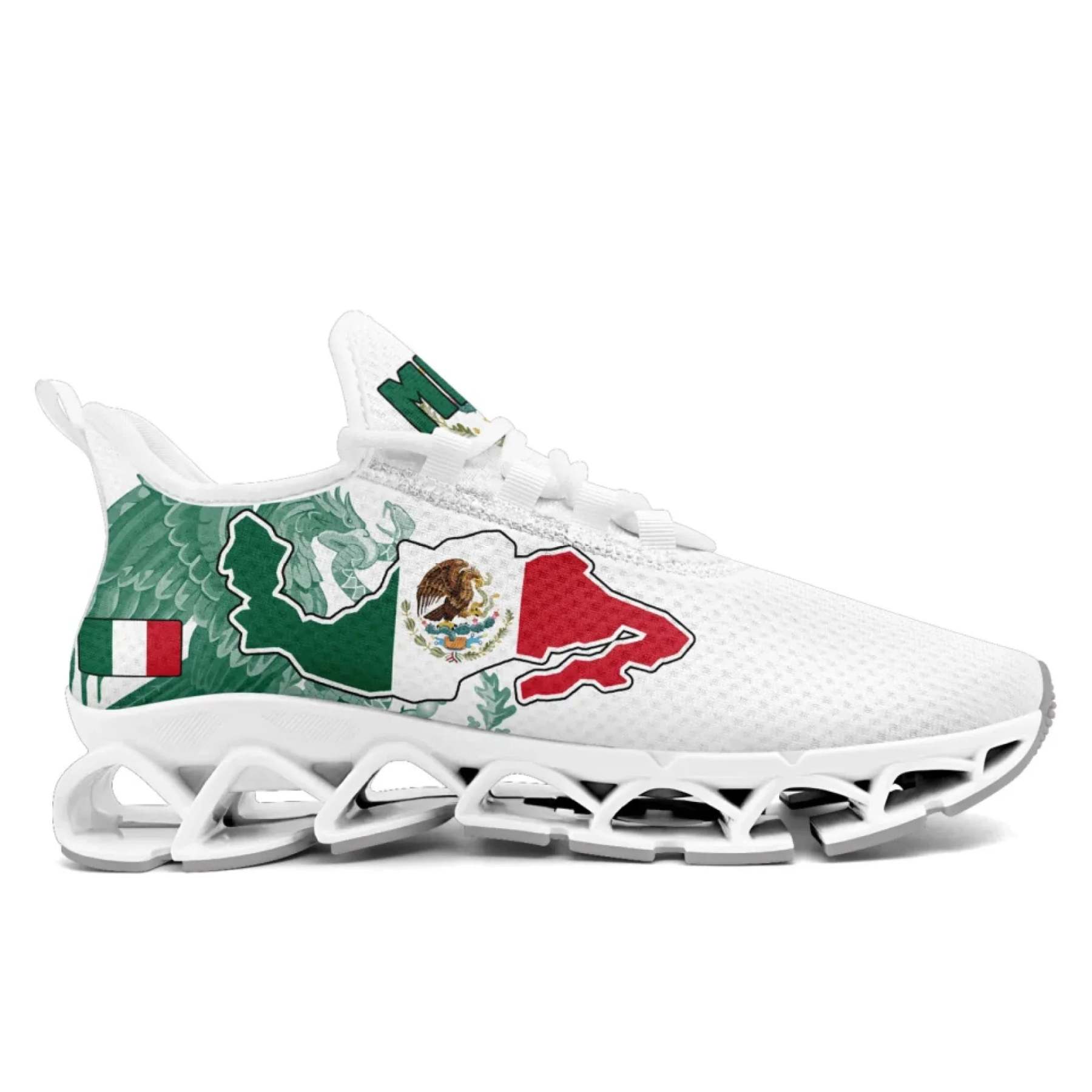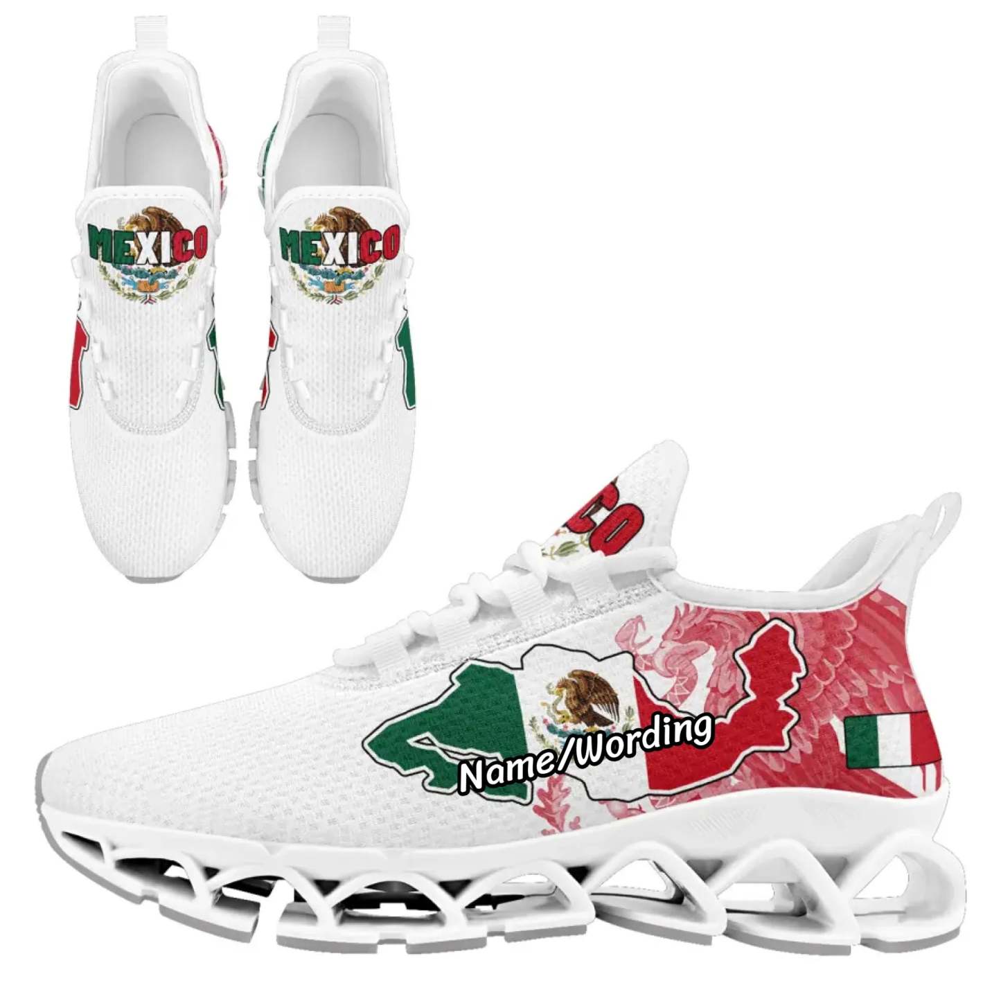 Personalized Mexico Flag Sneakers, Custom Mexican Heritage Pride Shoes, Breathable Running Shoes