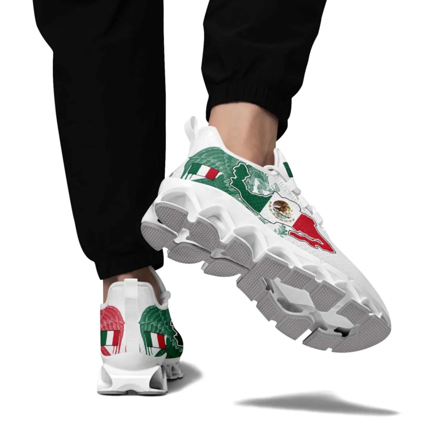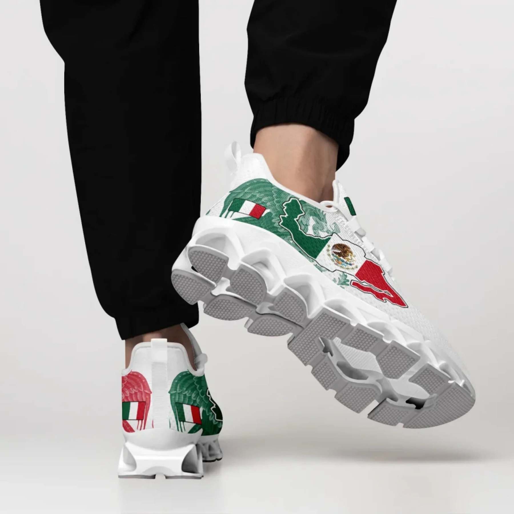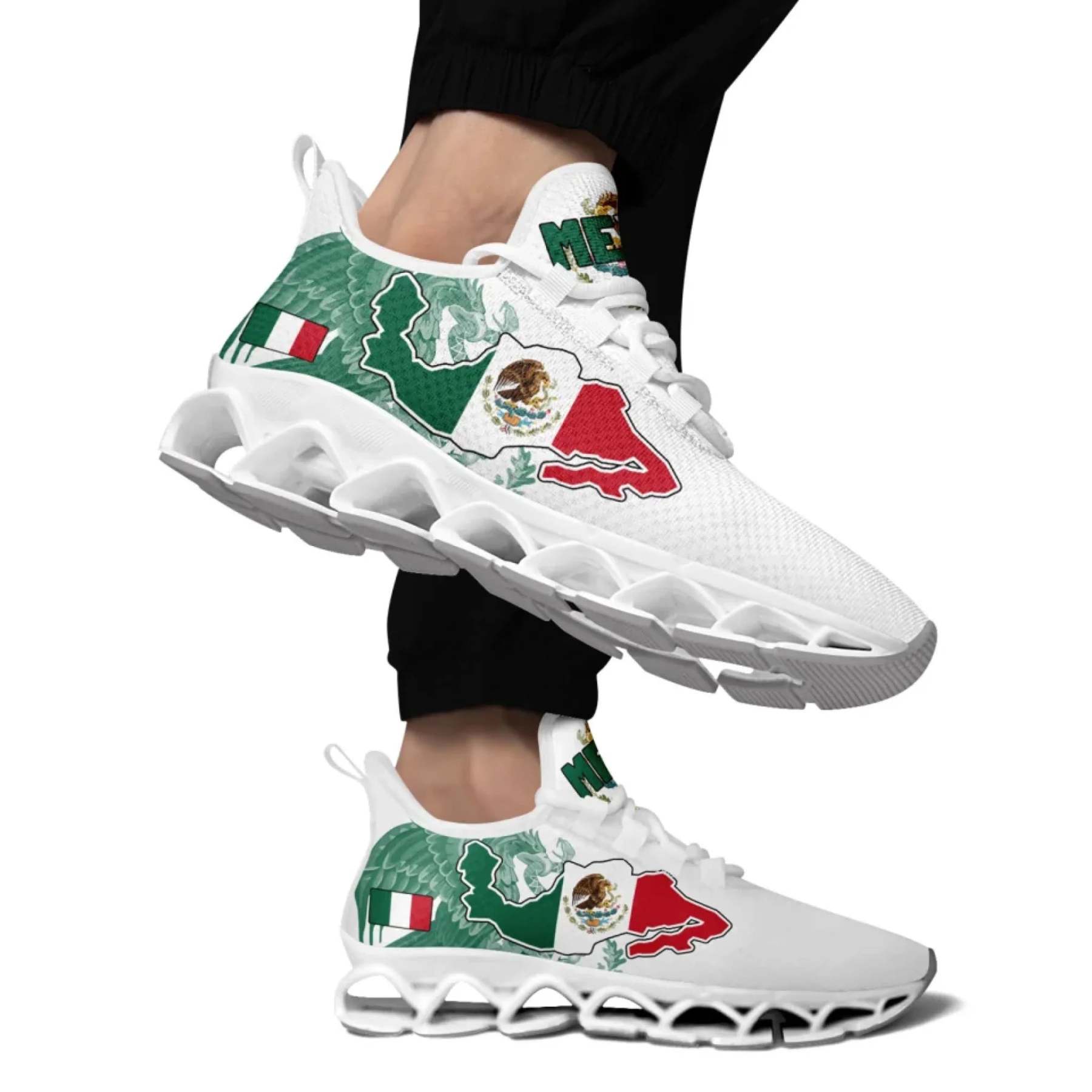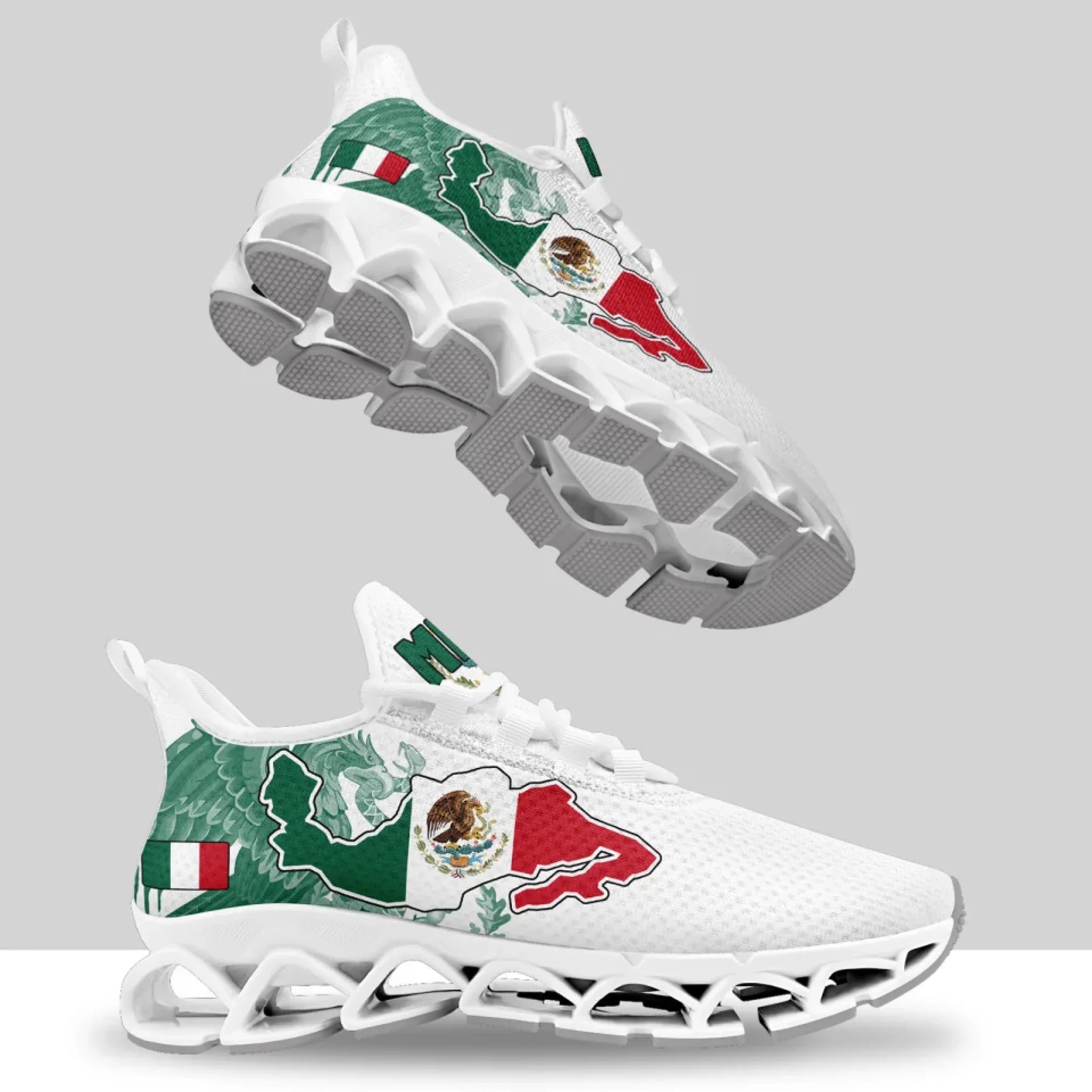 Personalized Mexico Flag Sneakers, Custom Mexican Heritage Pride Shoes, Breathable Running Shoes
