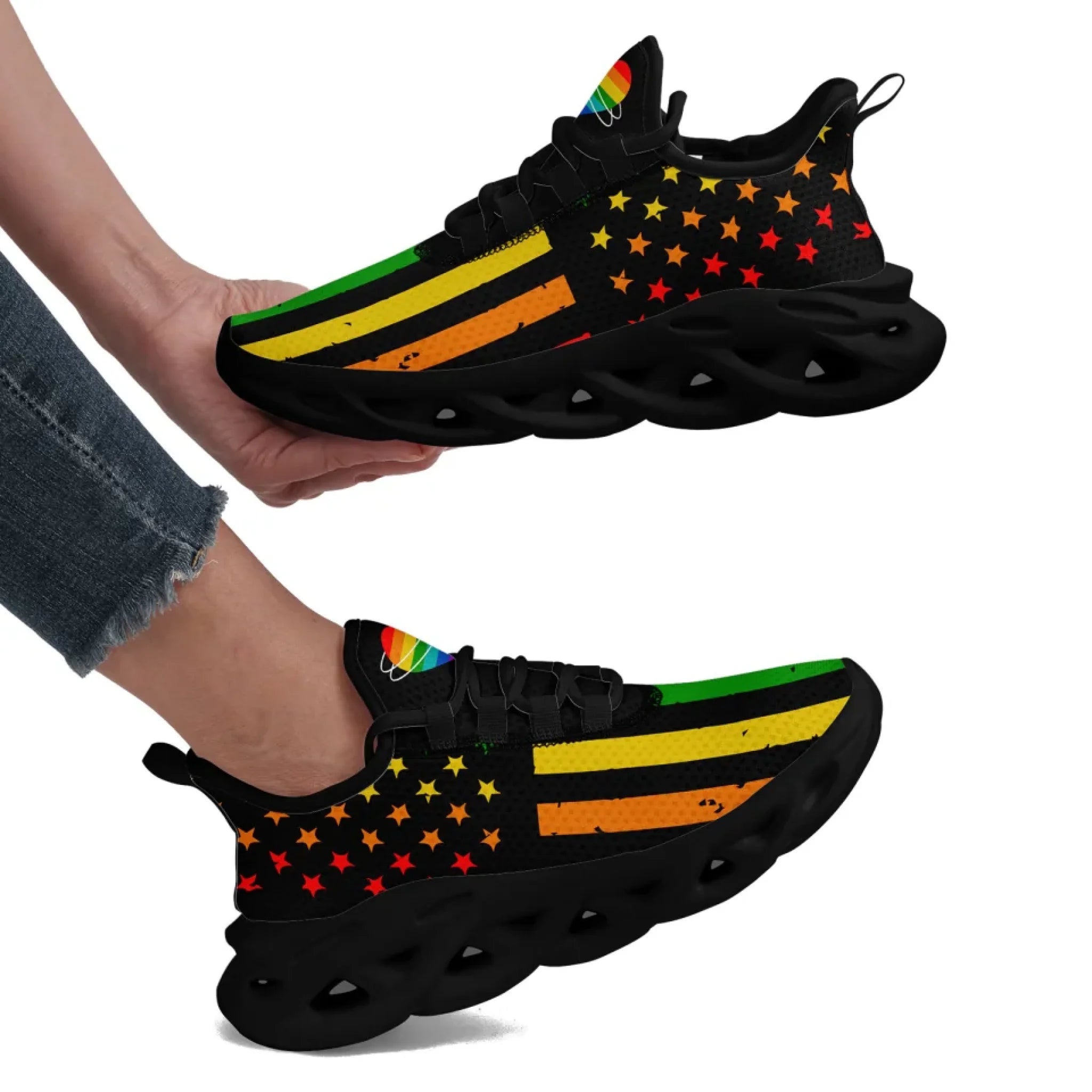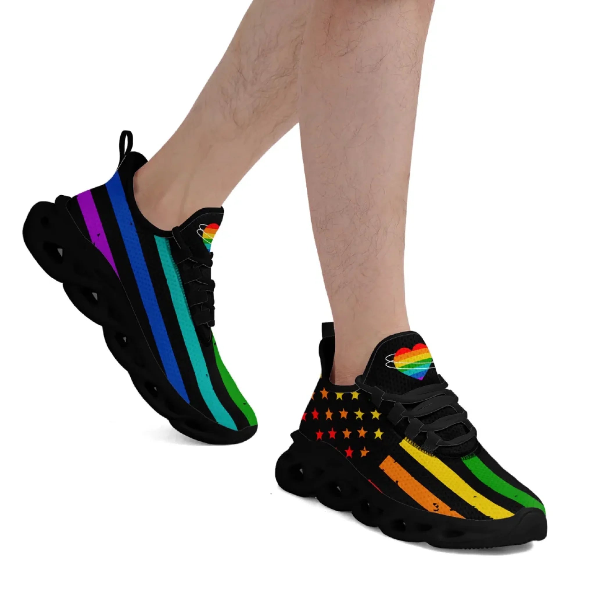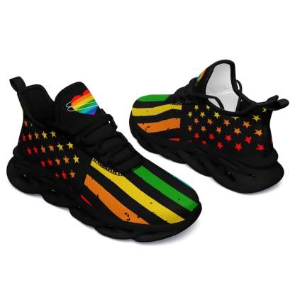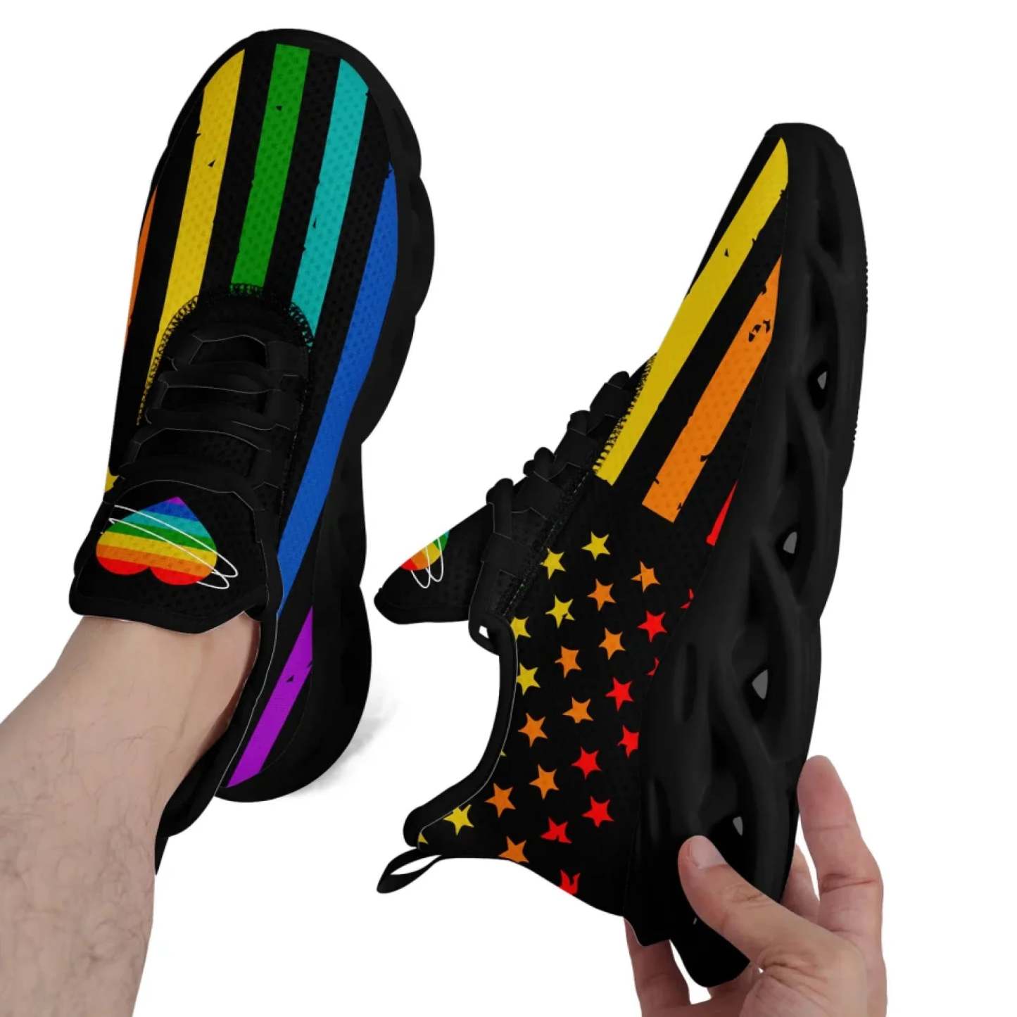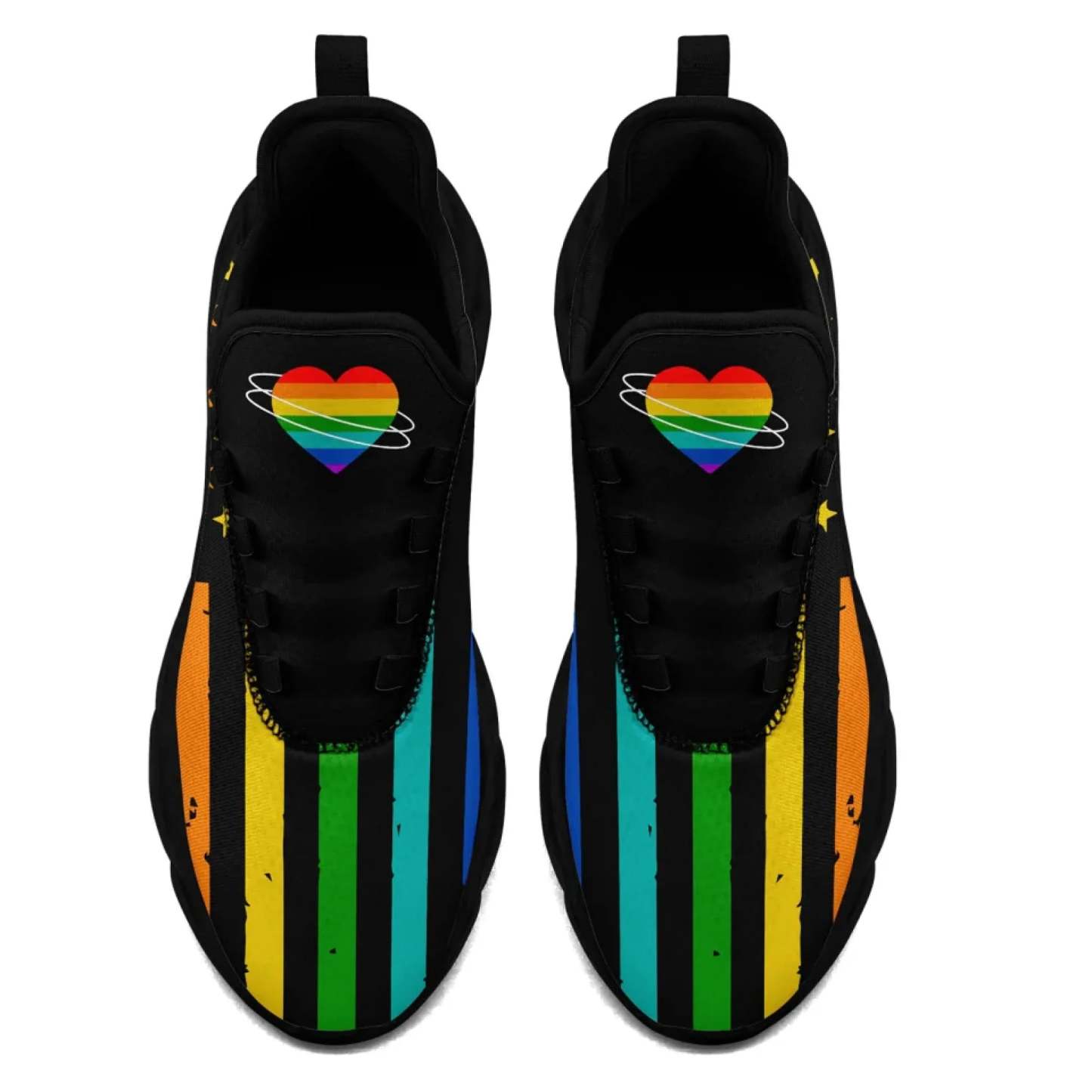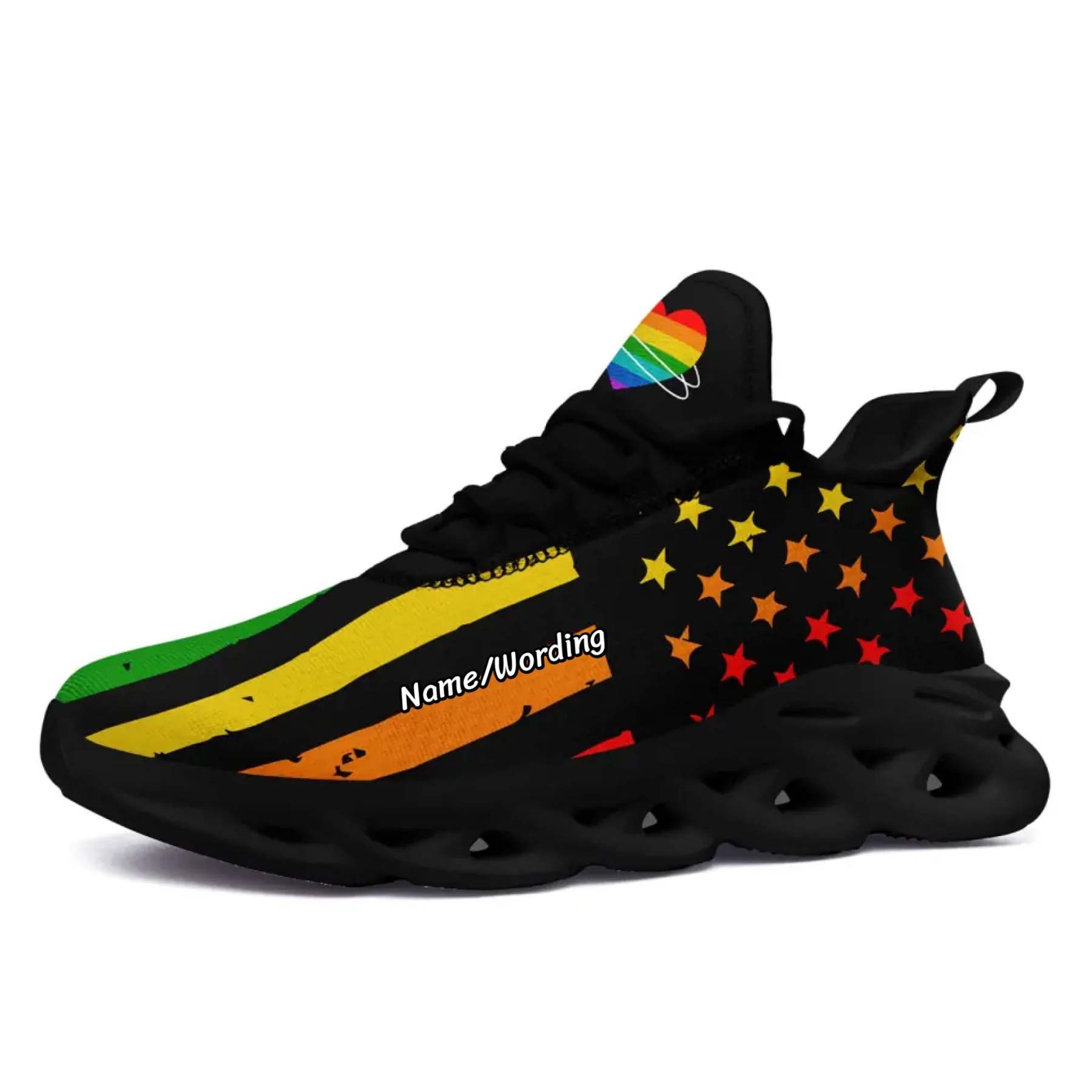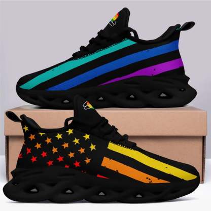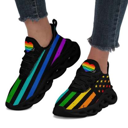 Personalized Pride Moon Glow Sneakers, Custom Celestial Rainbow Shoes, Comfortable Walking Shoes