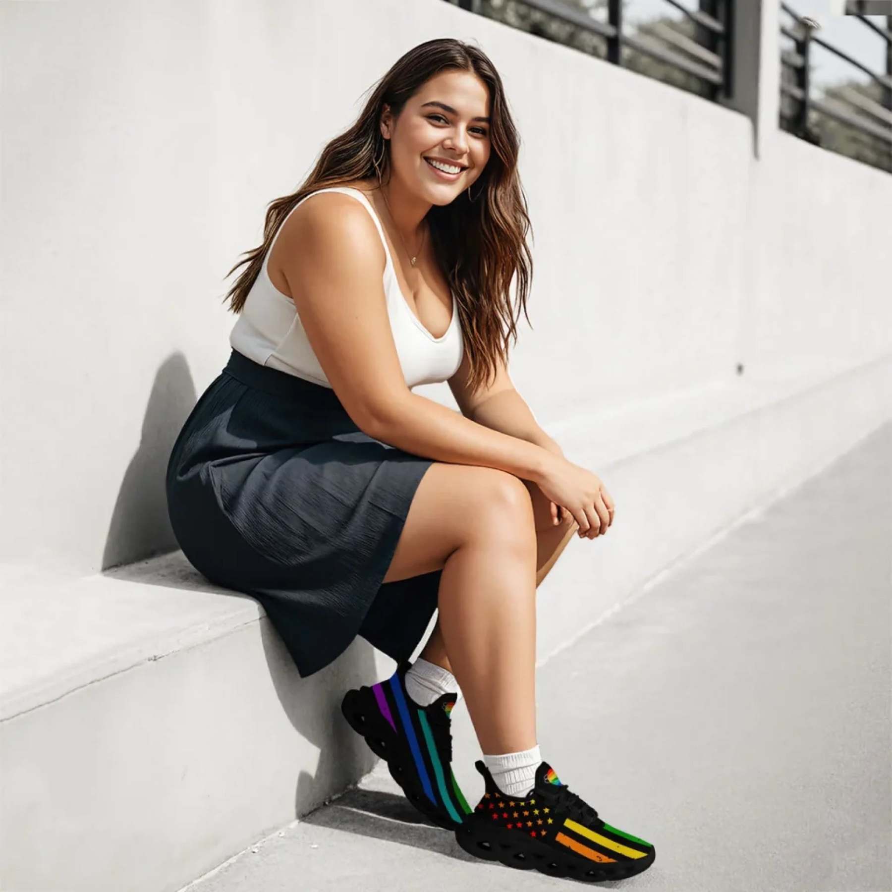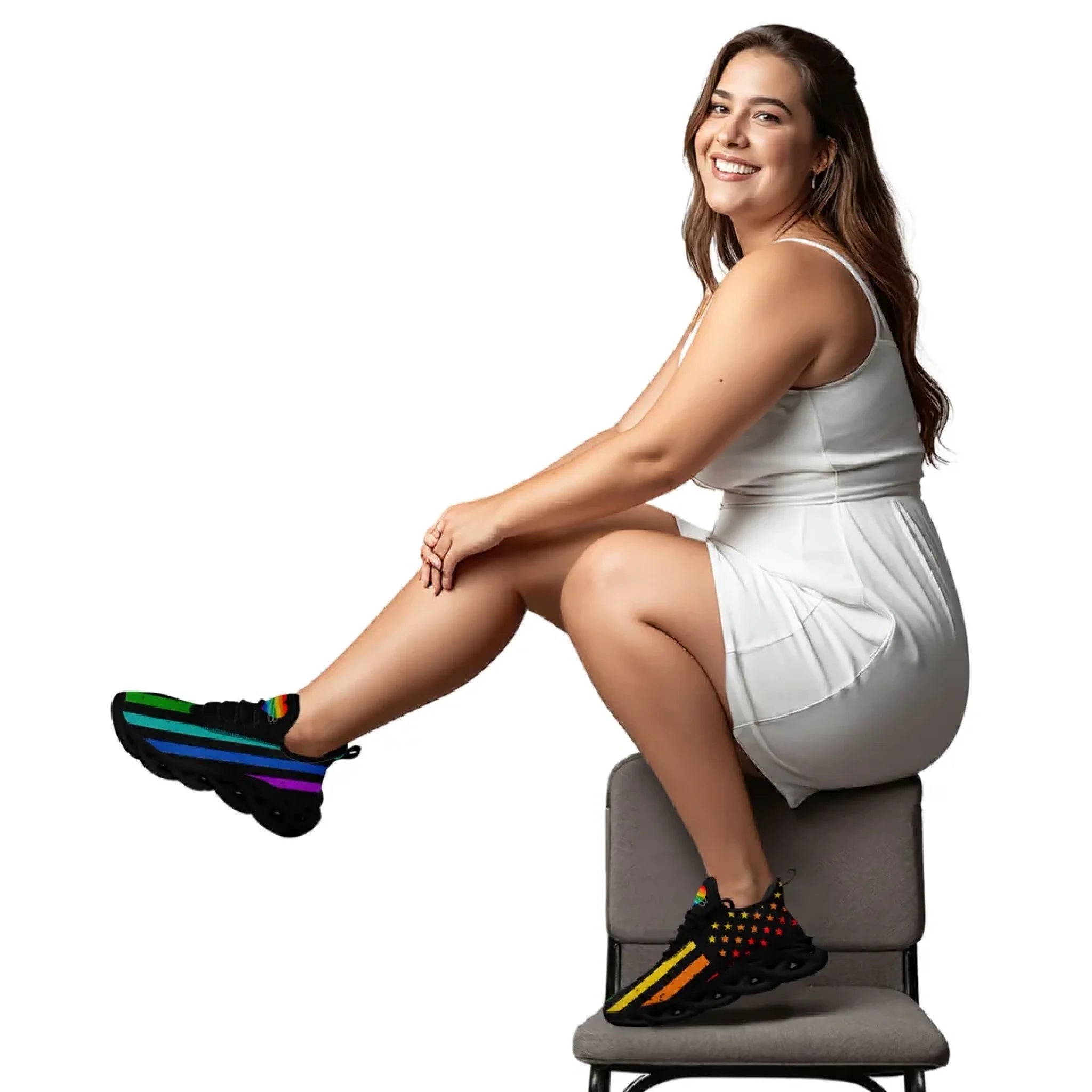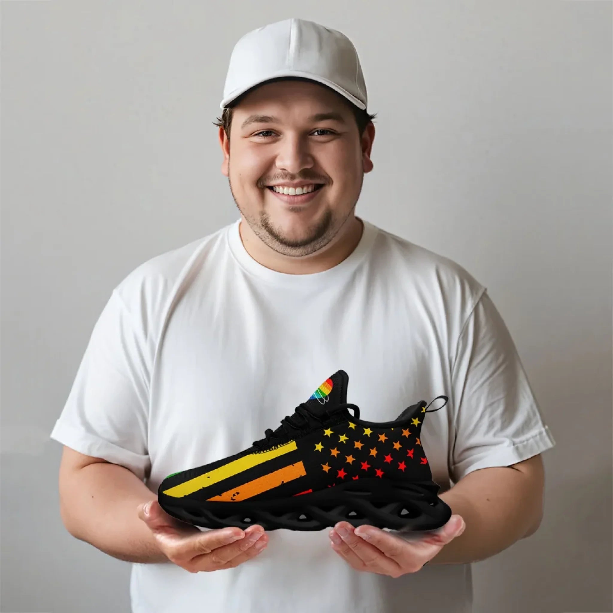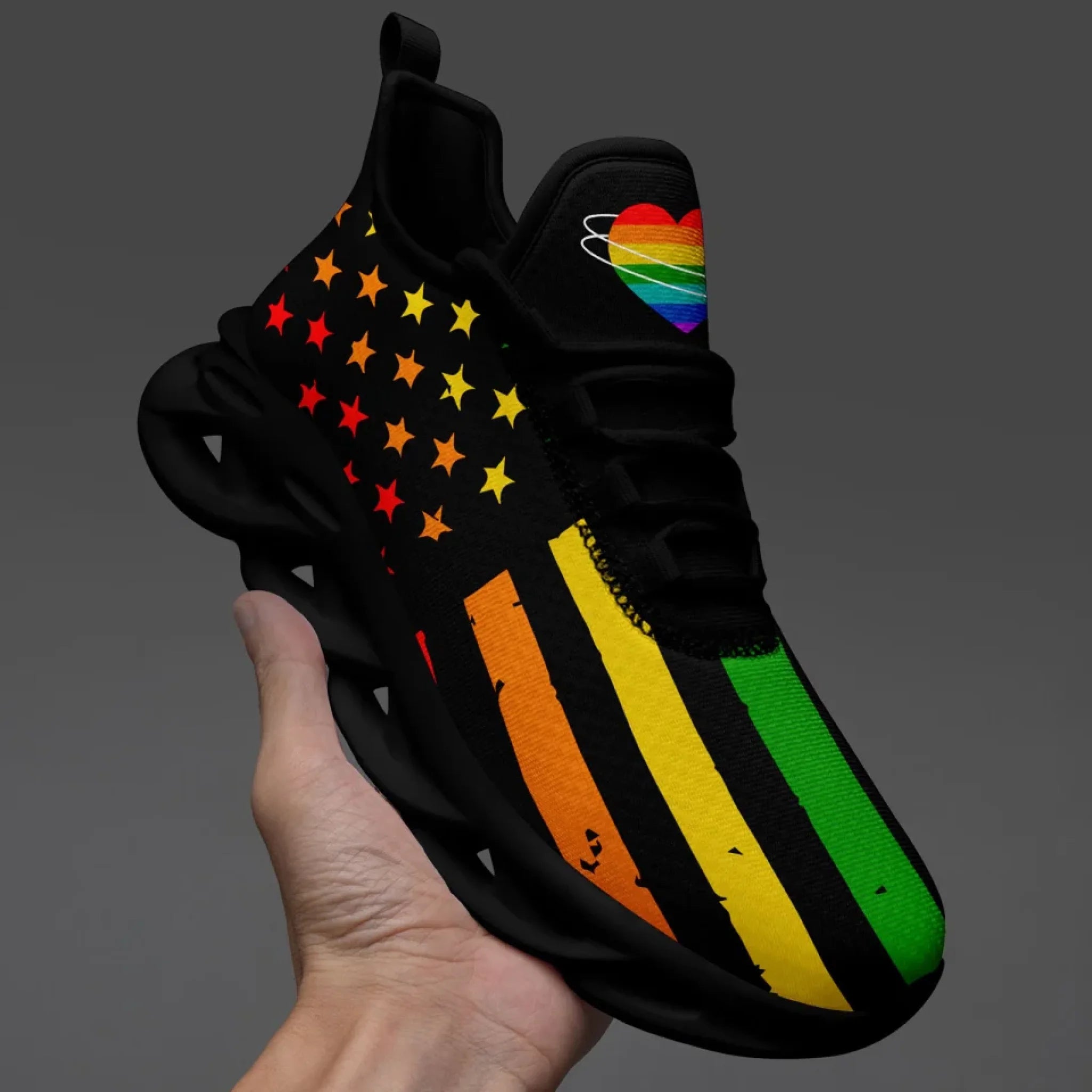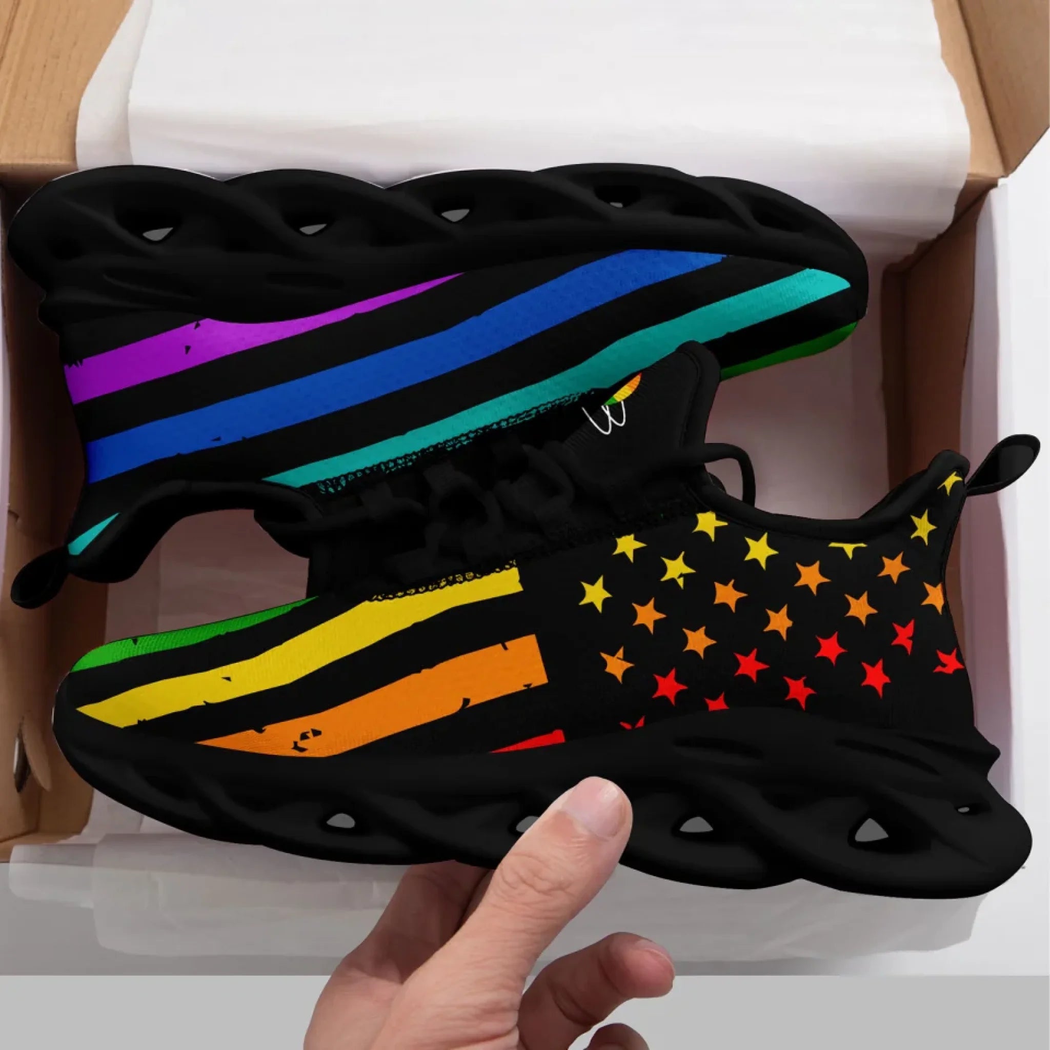 Personalized Pride Moon Glow Sneakers, Custom Celestial Rainbow Shoes, Comfortable Walking Shoes