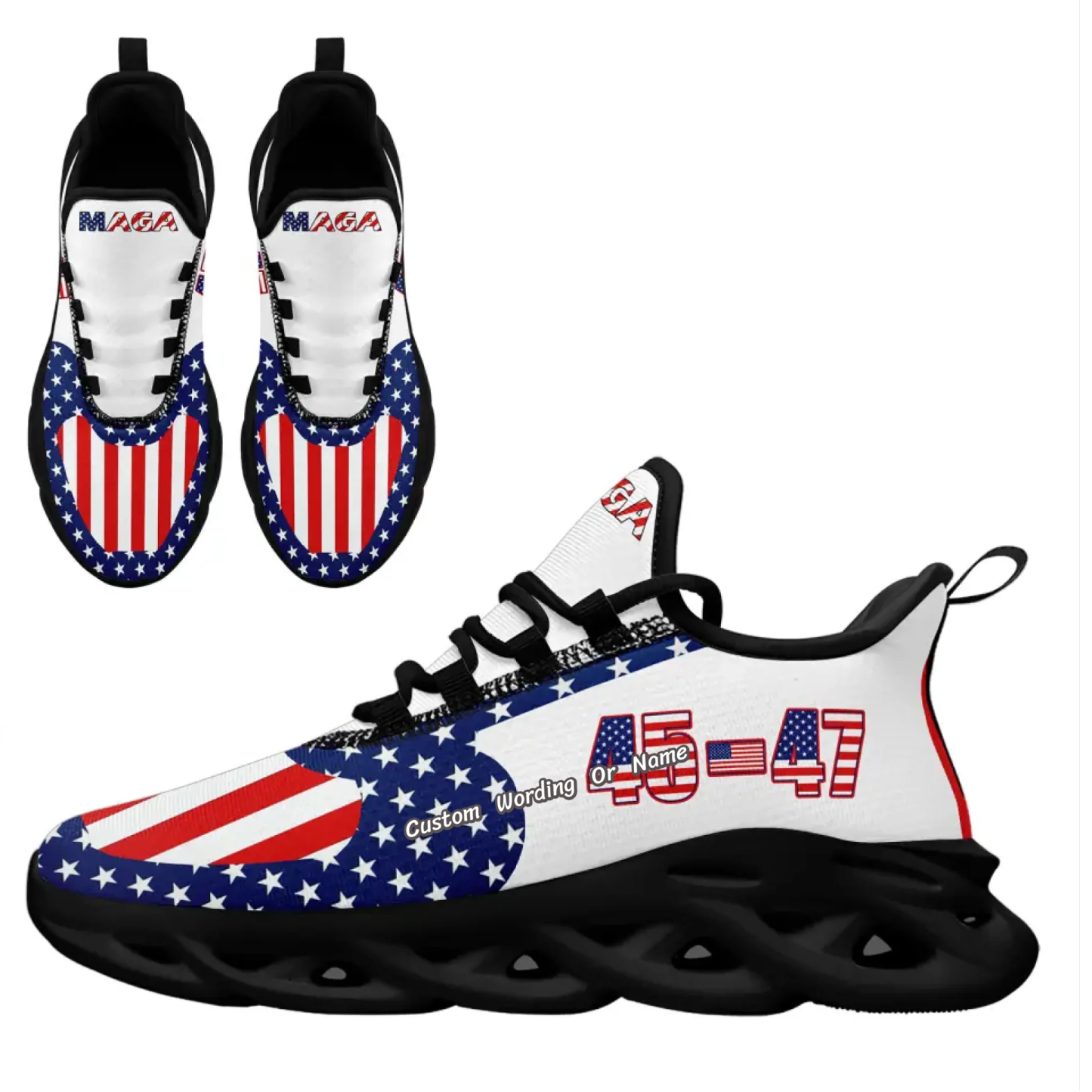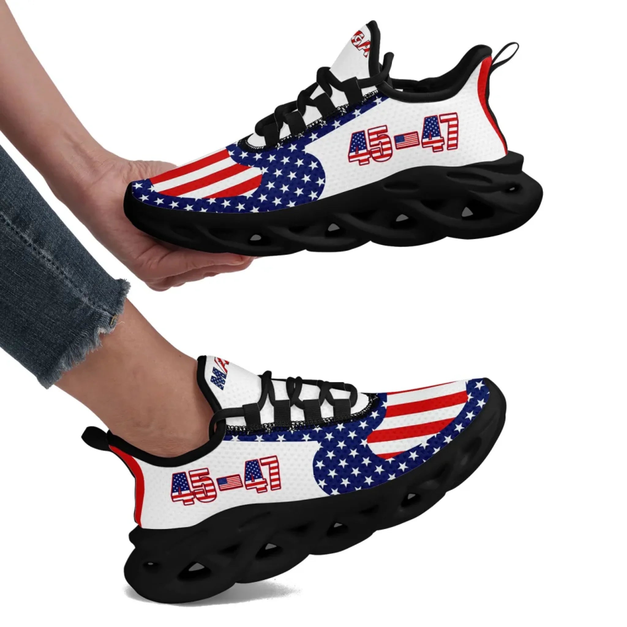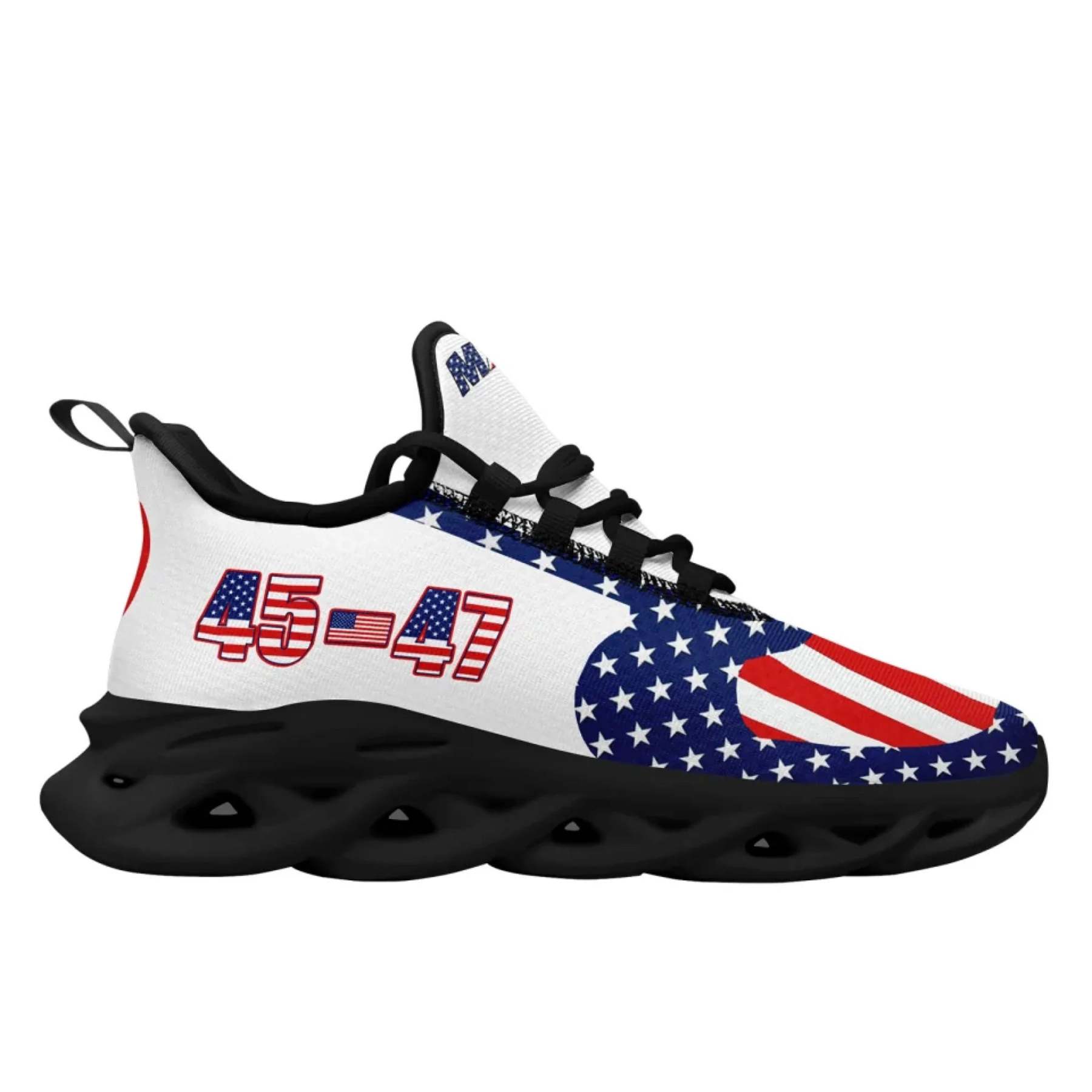 Personalized Trump 45-47 Sneakers, Custom Breathable Patriotic Shoes, Lightweight Unisex Shoes